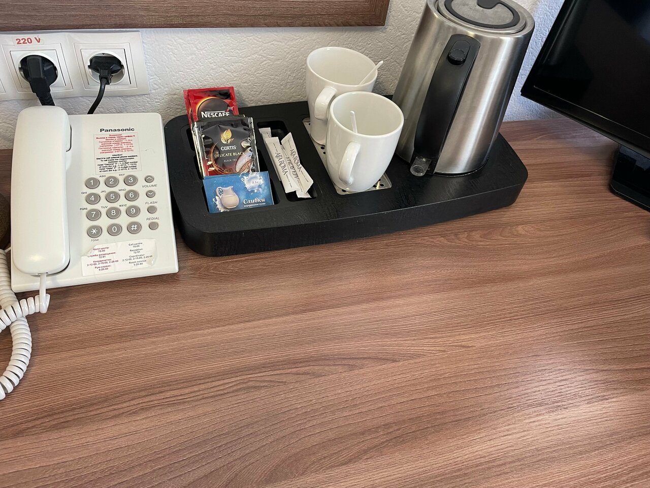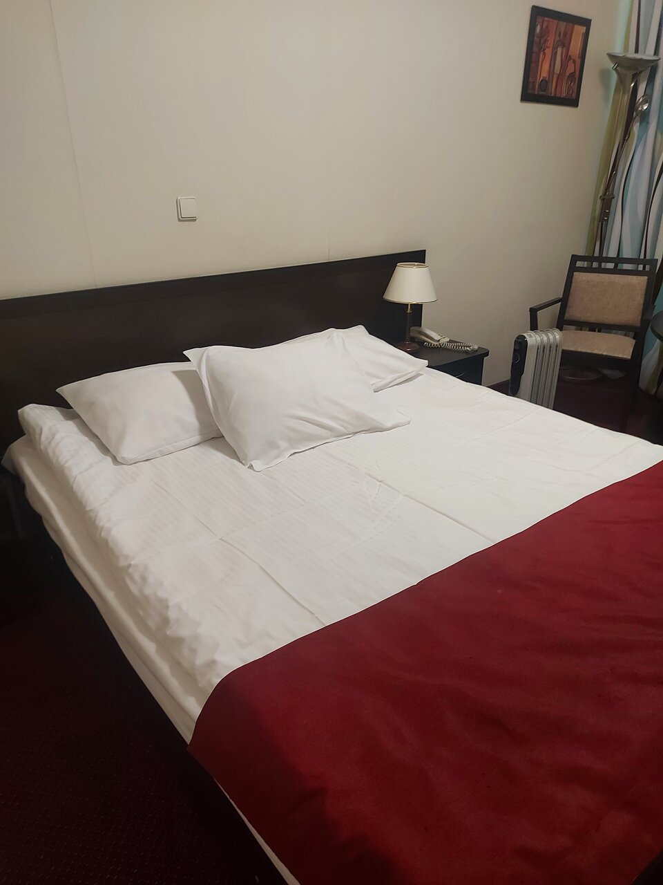 Добрый вечер! У нас был замечательный чистый номер. Обслуживание отличное. Только один минус подтекал электрический чайник в номере.