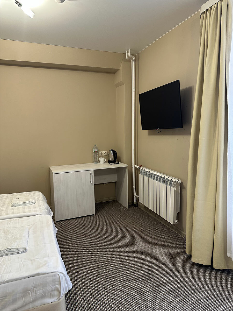 Не очень чисто. Нет горячей воды, зато номер с протекающим джакузи. В номере не было мусорного ведра. Замёрз в номере, пошёл просить пульт от кондиционера, второй администратор парень выдал мне его. Женщина, заселявшая меня, почему-то мне его не доверила. Не понимаю, почему такие вещи надо специально просить? В сан узле акустика великолепная, можно слышать кричащих за стенкой рабочих, как у себя под ухом. Заселение только с наличными, что не очень удобно. В целом, если нужна крыша над головой, сойдёт, меня заселили сразу же без бронирования, но ценник в 3200 для такого номера мне кажется высоковат.