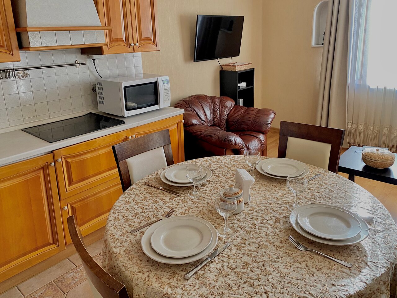 Отличные аппаратменты в самом сердце столицы! Квартира теплая и чистая, постельное белье, полотенца, коврик в ванной — свежие и не ‘уставшие’. Посуда очень чистая, также как и кухонные поверхности. Обычно в таких местах первым делом хочется перемыть чашки и стаканы))) По квартире спокойно ходишь босиком, как-будто приехал домой. Заселение и выселение было очень комфортным. Однозначно рекомендую! Единственным минусом лично для меня был очень мягкий матрац, я на таком сплю и мучаюсь. Ну это субъективное мнение. Каждый любит свое ))