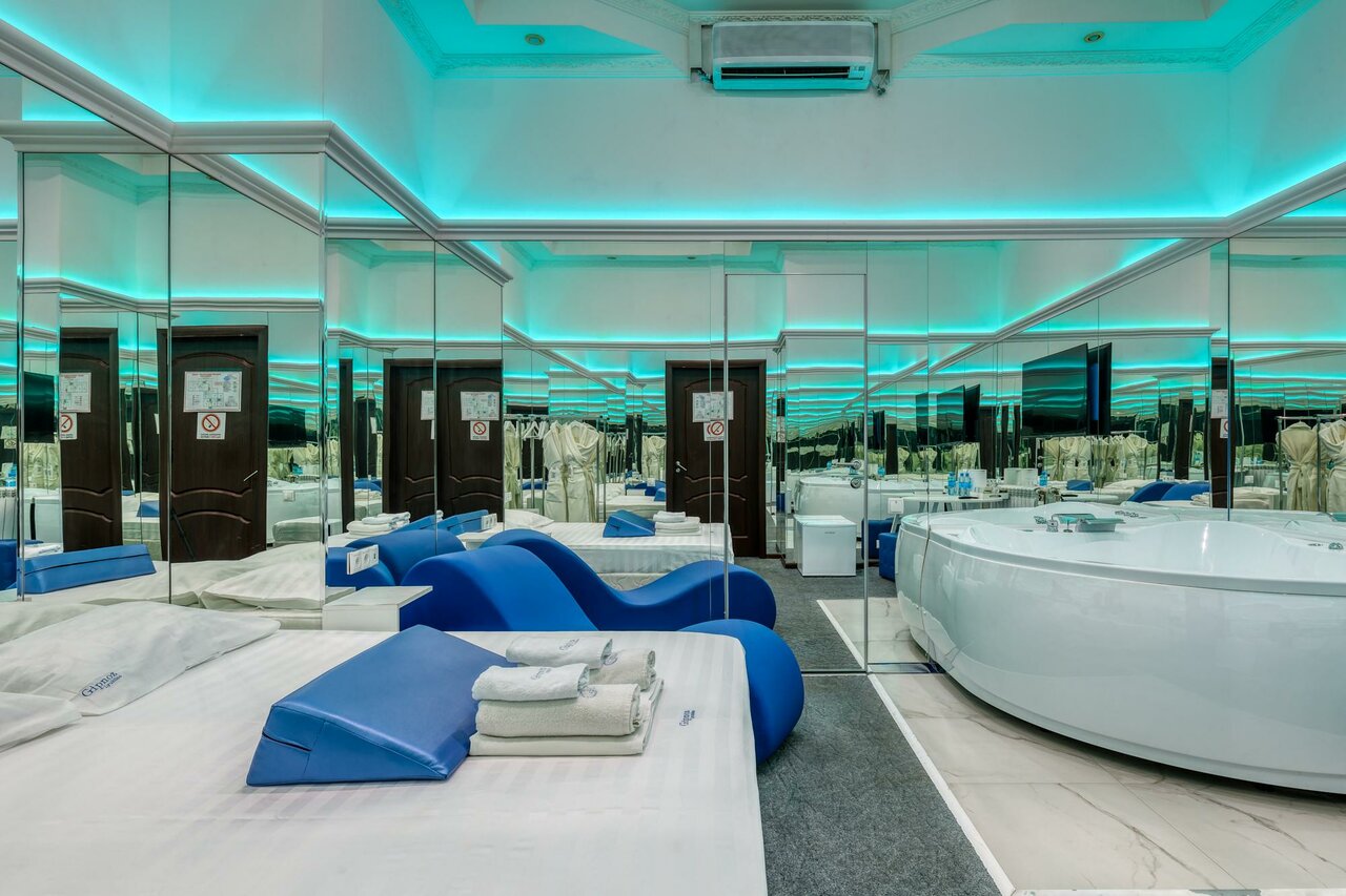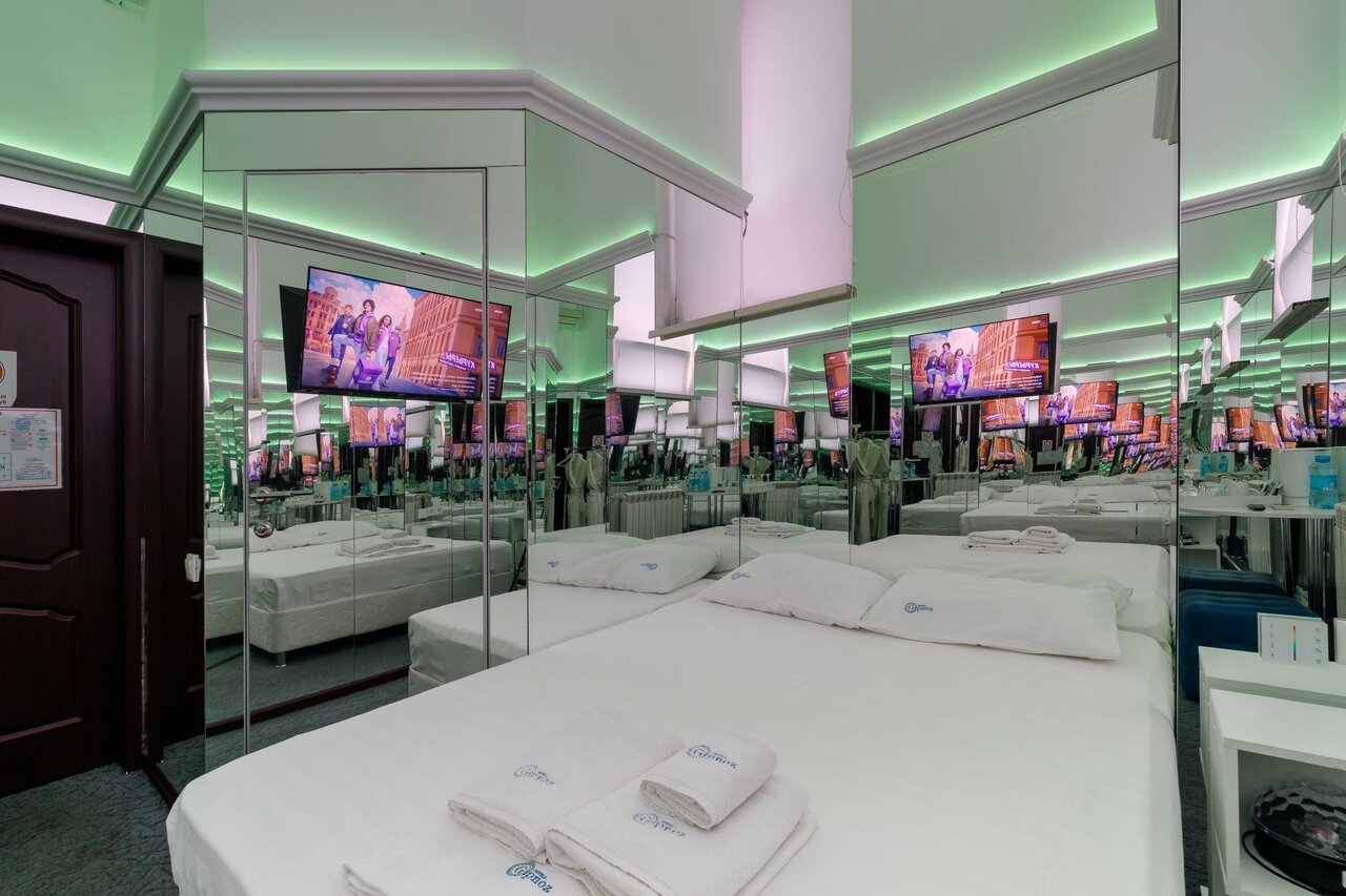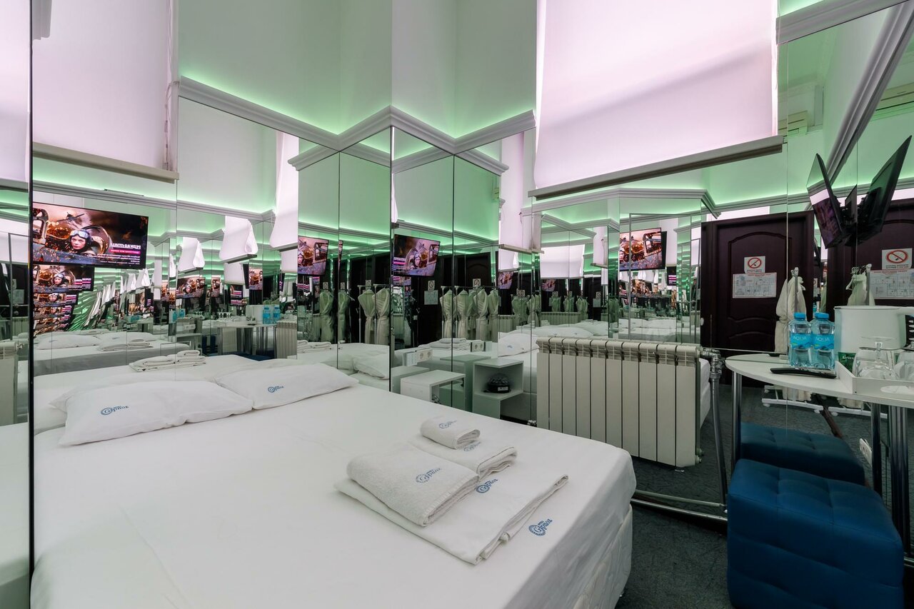 Были тут недавно с мужем. Отвратительное впечатление ,в номере было грязно,в сливе душевом волосы,я побрезговала пользоваться душем. Отдали 7500 не понятно за что наверное за зеркала и подсветку)) В номерах нет тантры ,качелей ,никаких утех ,а деньги содрали и отказали в скидке.Премиум номер одно название ,не удалось воспользоваться джакузи не хватило воды ,так ещё все в ремонтной пыли,не говоря уже о запахе. Больше не приедем туда,отели другие этой же сети мне понравились ,я там постоянный гость на авиамоторной) Этот к сожалению самый убогий и есть над чем поработать.