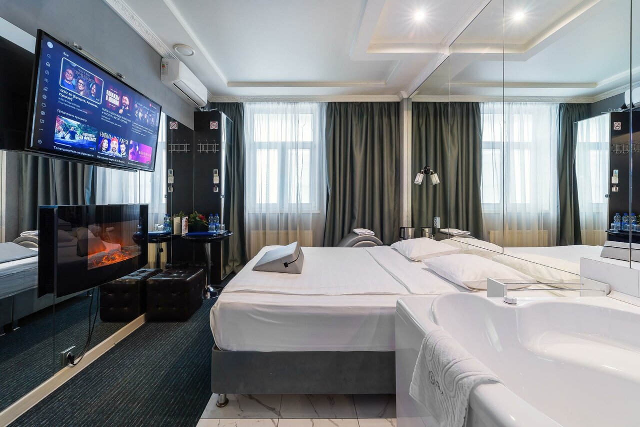 Был в отеле первый раз со своей миледи. Нам все очень понравилось! Приветливый и доброжелательный сотрудник рецепции, очень чистый и аккуратный номер, красивая подсветка, очень уютно. Отдельный кайф это зеркальные стены и потолок. Огонь, всем парам рекомендую отдохнуть в этом прекрасном месте!