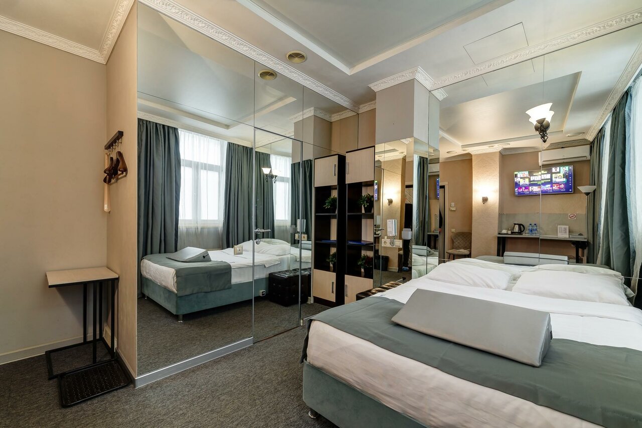 Небольшой отель в центре Москвы. Приятный персонал, чистые, зеркальные номера. Приятная атмосфера.