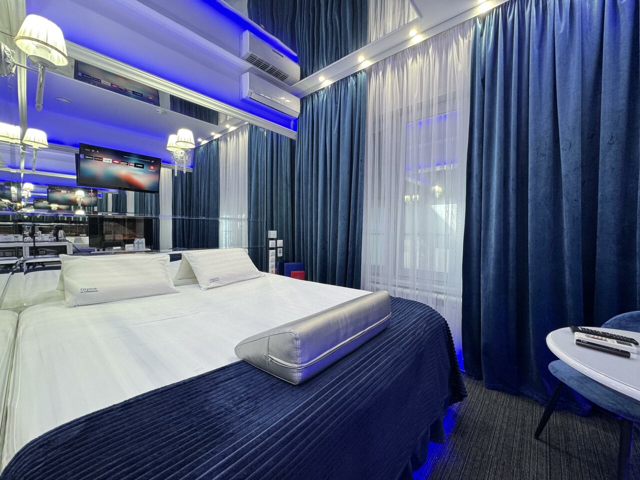 Впервые посетили данный отель Гипноз на Авиамоторной с мужем и остались очень довольны. Брали номер 5. Номер шикарен-потолки и стены зеркальные, большая джакузи с гидромассажем, отдельно есть ванная комната со всеми нужными принадлежностями. В номере электрический камин, дискошар с подсветкой с возможностью подключиться через блютуз к своему телефону, мини бар платный но есть возможность заказать свою еду. Качели-огонь. Все чисто и аккуратно. Подсветка номера создает атмосферу. Тантра бомбическая. Если Вам нужны новые впечатления и разнообразие -то Вам однозначно сюда. Очень романтическая атмосфера.