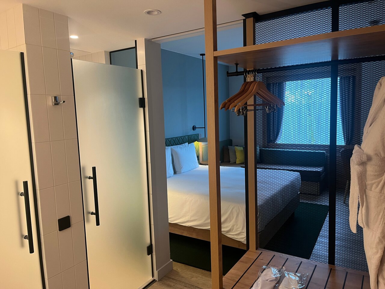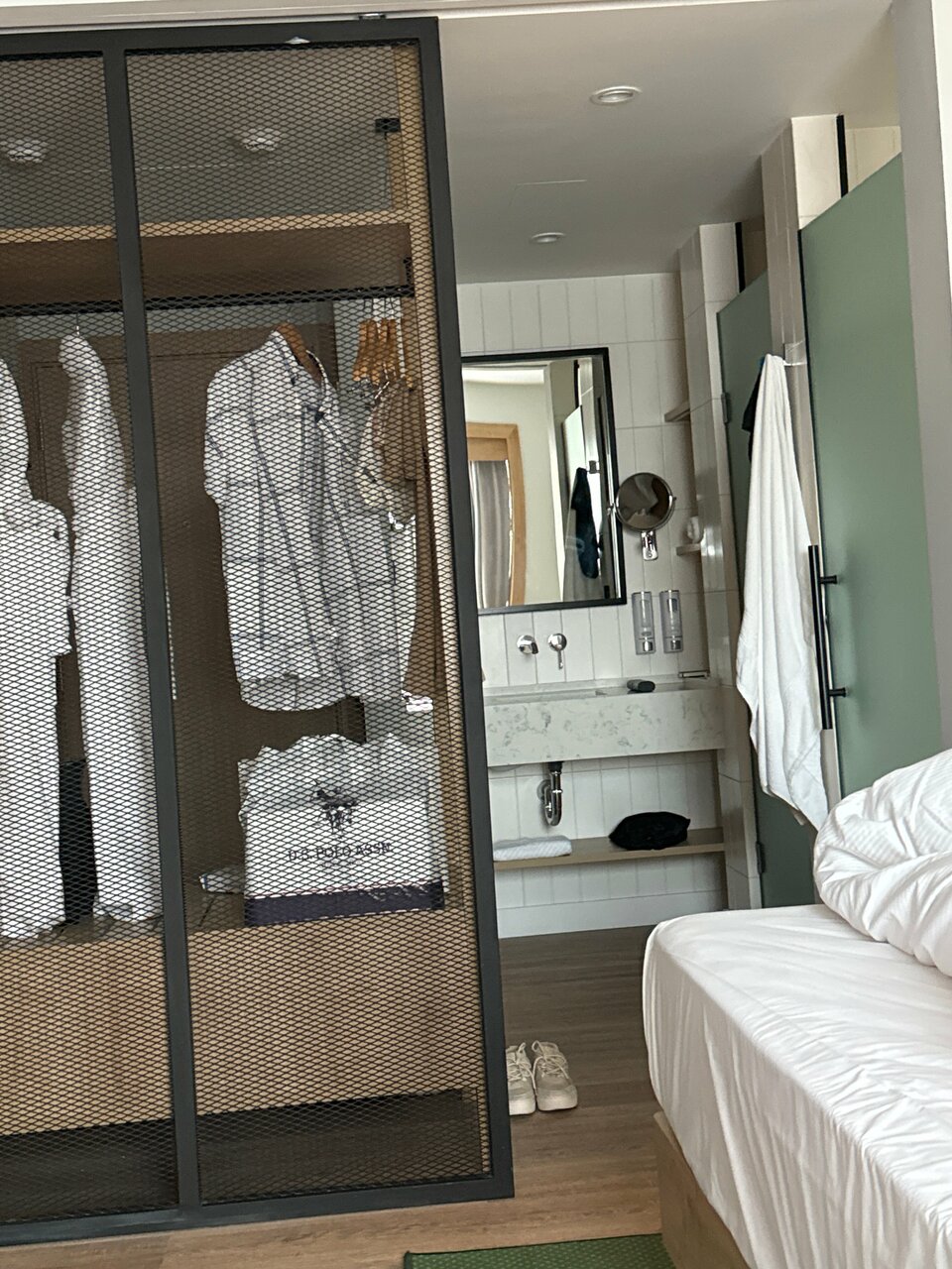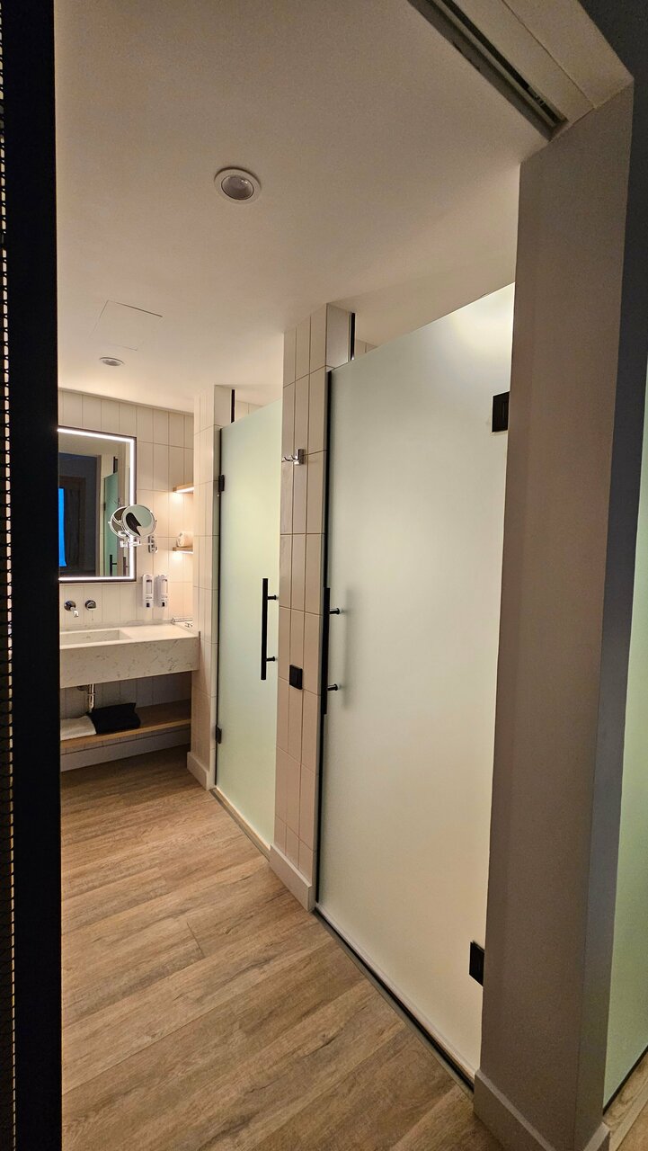 хороший отель, были нюансы при заселении, но персонал извинился. единственное, не представляю как жить с кем-то в отеле, туалет и душевая без замков и сверху открыты. звуки на весь номер..