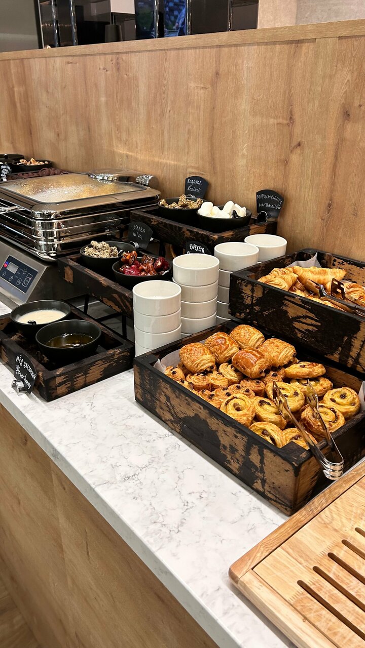 Не придраться. Уровень! Новый ремонт, везде мебель из дорогого ЛДСП Эггер. Завтрак как в лучших сетевых отелях, и яйца на заказ и множество десертов, кофе зерновой с нормальным молоком, шампанского в ведерках только нет)) Матрас и подушки — упал и уснул.