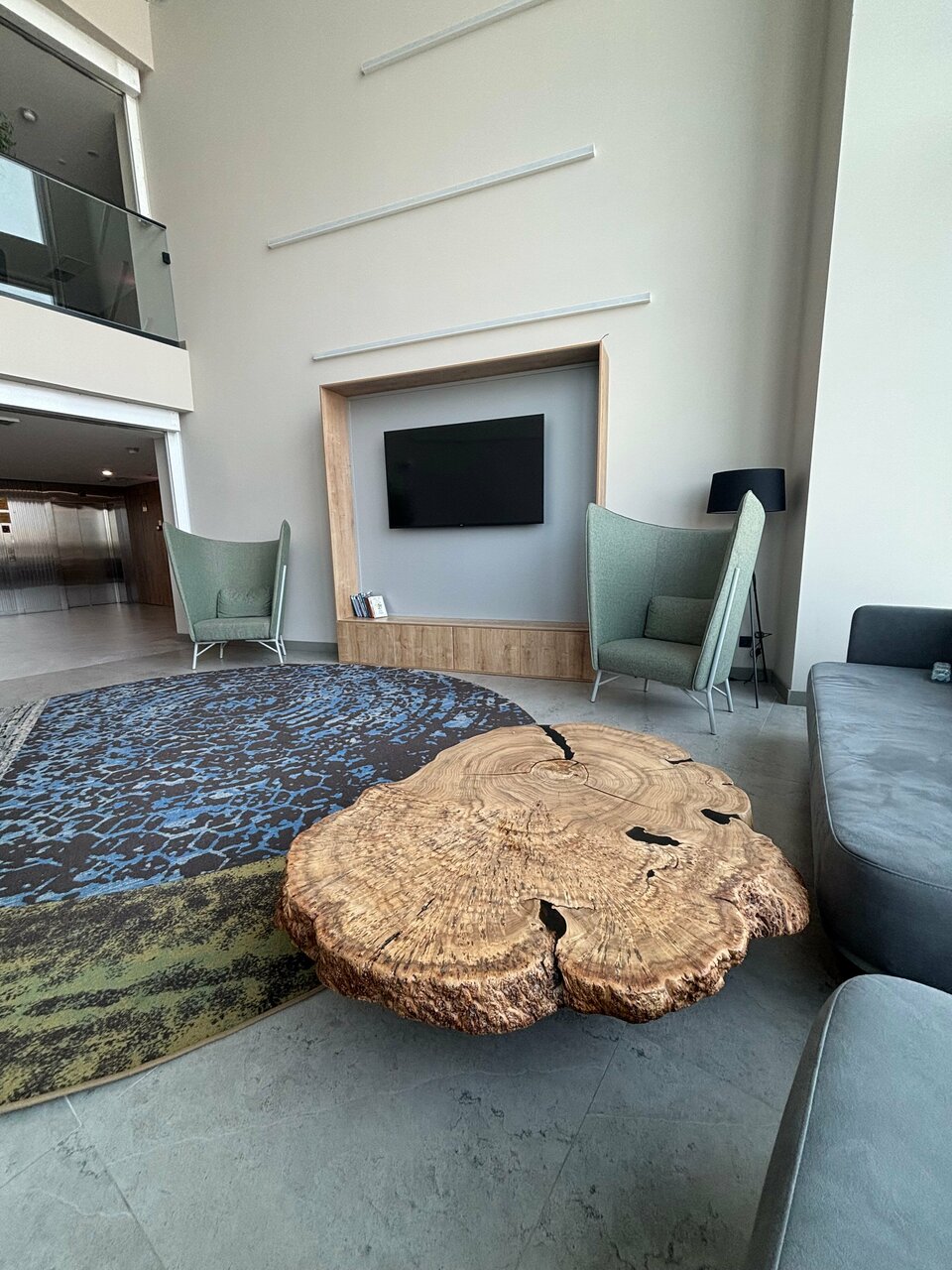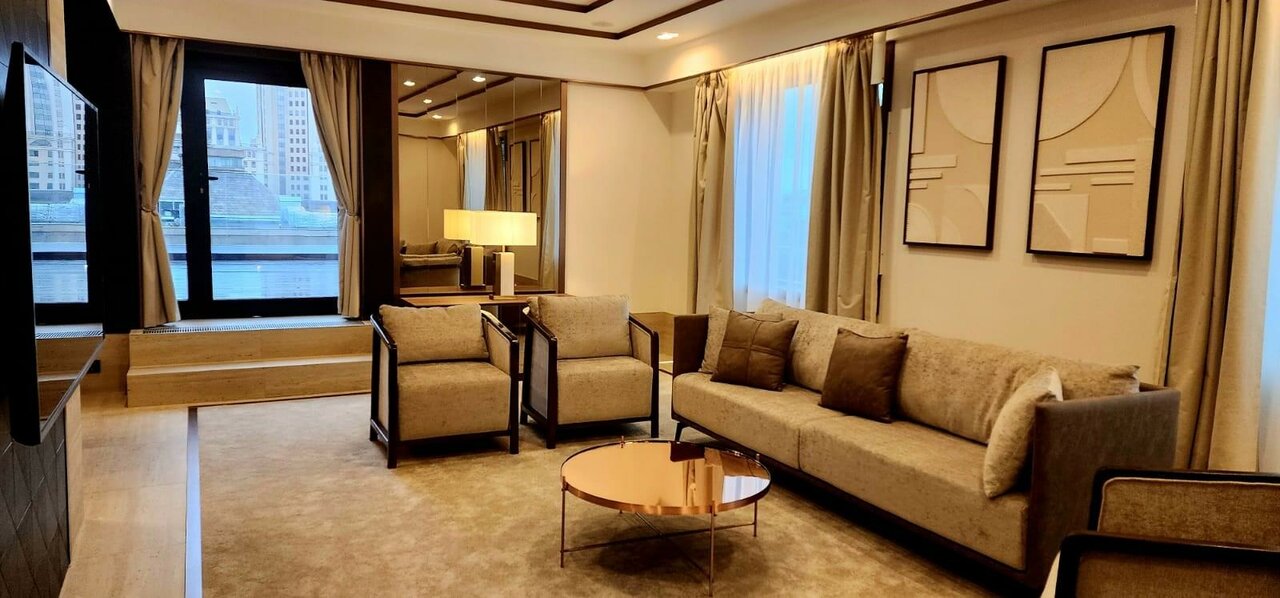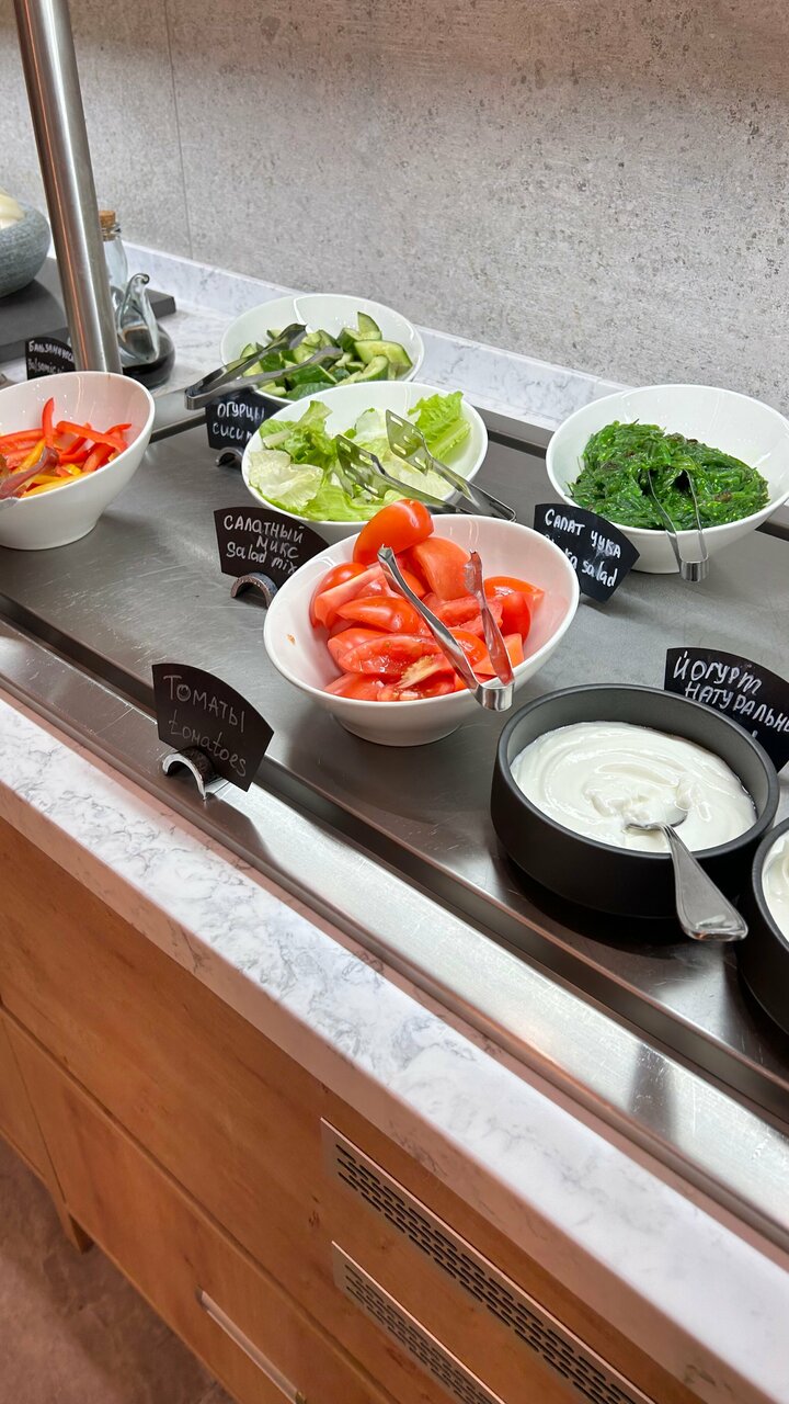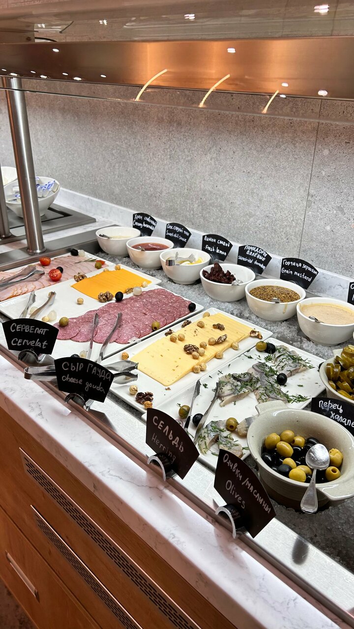 Приятная красивая гостиная с удобной локацией. В номере есть все необходимые от халатов и тапочек по принадлежностей. Сам номер интересный, многие писали про душевую и туалет, да перегородки нет, учитывайте если вам важно. Завтраки действительно разнообразные и вкусные. Из минусов вопрос по обслуживанию и да, если выбираешь на сайте номер выходного дня, комплимента не будет и выезд до 14, не критично просто учитывать этот момент. В момент заселения в номере было холодно, предоставили обогреватель.