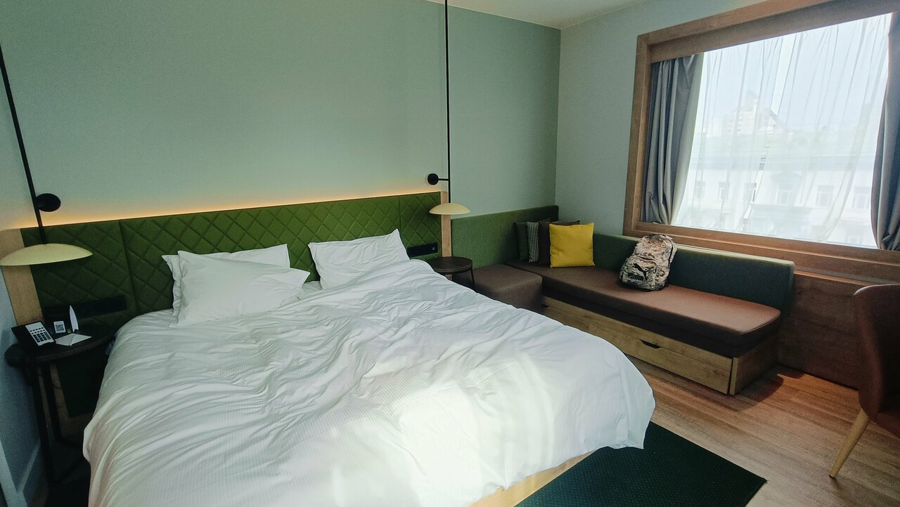 - Большие номера с утюгом и гладильной доской; Бесплатное пиво и вино; Вкусный завтрак (яйца на заказ, десерты, зерновой кофе); Удобная локация; Наличие ресторана, фитнеса, конференц-зала