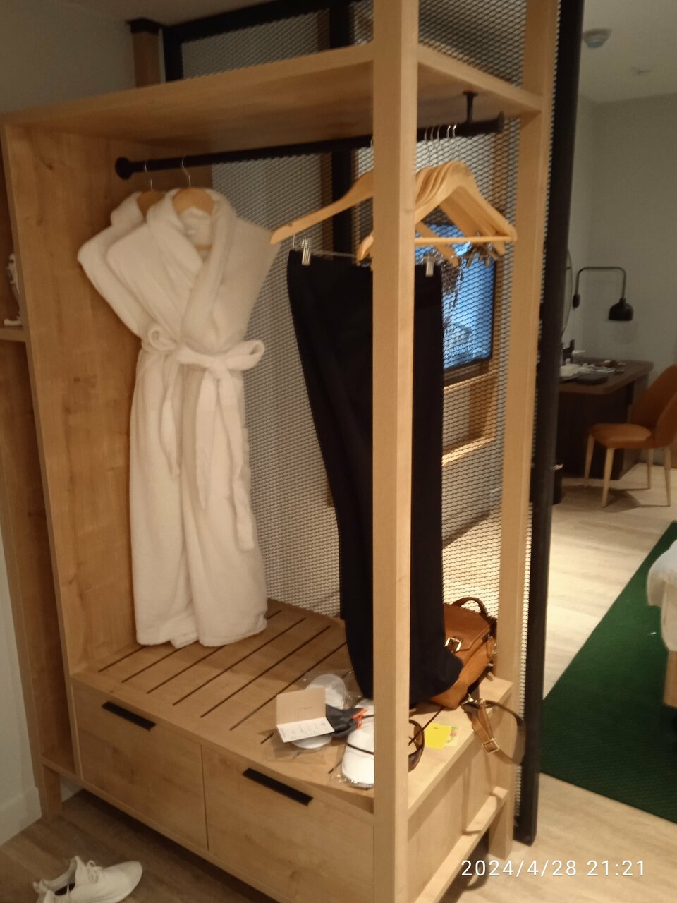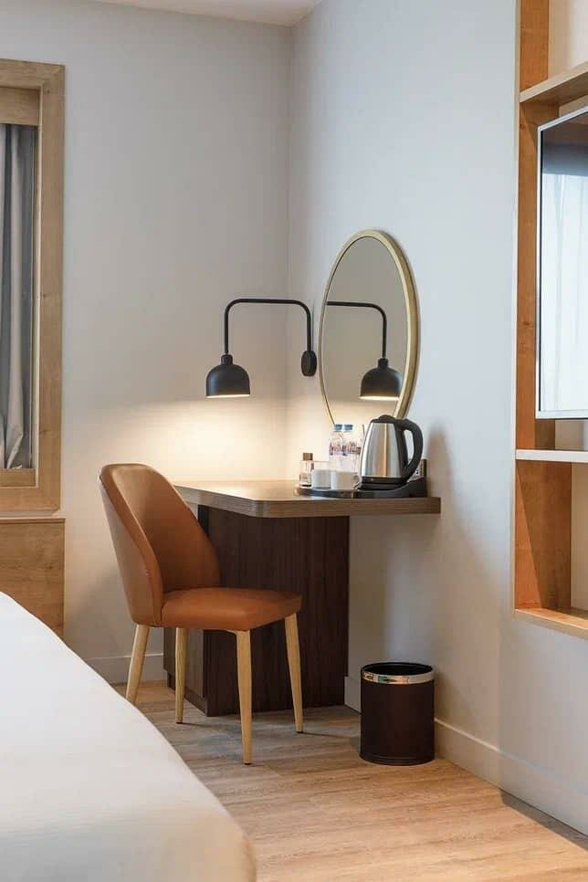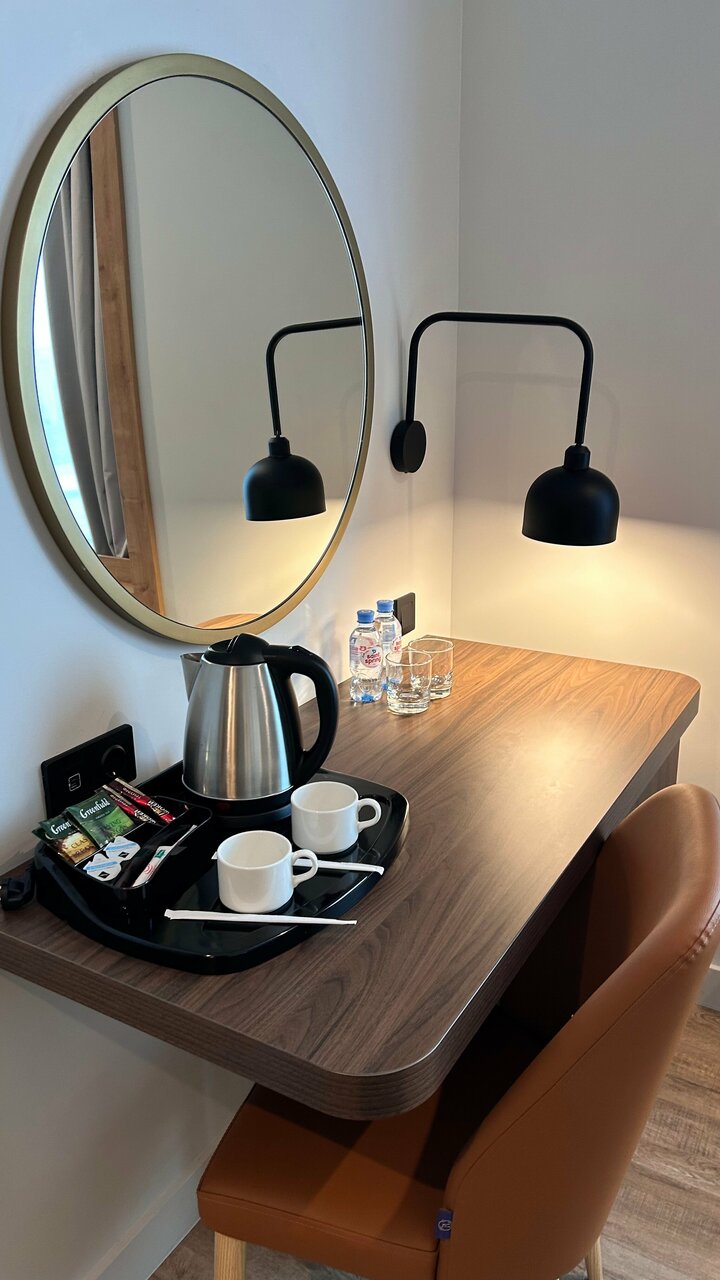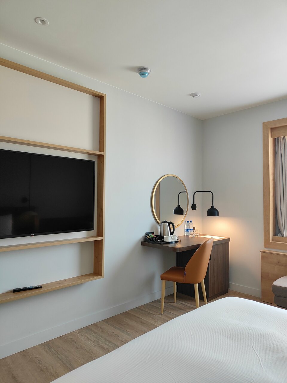 Хороший отель, соответствующий уровню. В отеле есть ресторан, фитнес и конференцзал. Номера большие, есть даже утюг и гладильная доска. Стандартно чайник с принадлежностями, тапочки и халаты. Решение планировки номера интересное, единственное смущает раковина сразу в коридоре, не очень уютно
