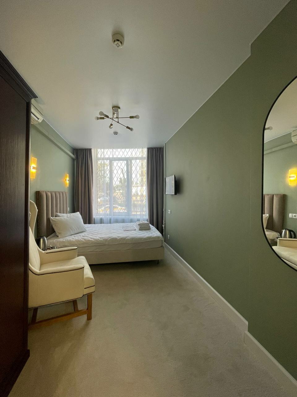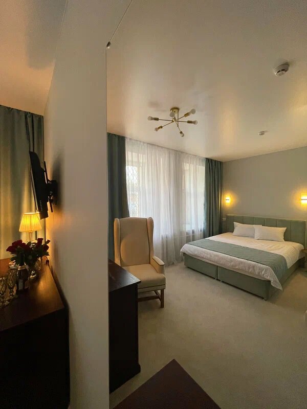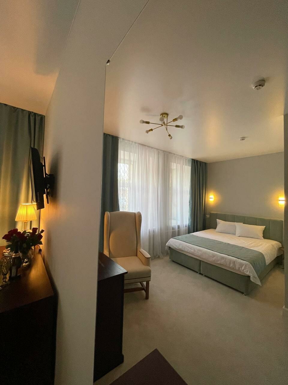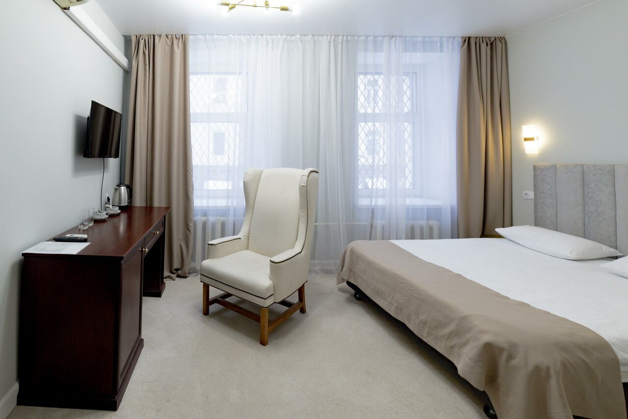 В данной категории размер номера составляет 23 кв м, с двумя большими окнами, в каждом номере располагается двуспальная кровать, прикроватные столики, два кресла, журнальный столик, туалетный столик, вешалка-штанга для одежды, мини-холодильник, ча...