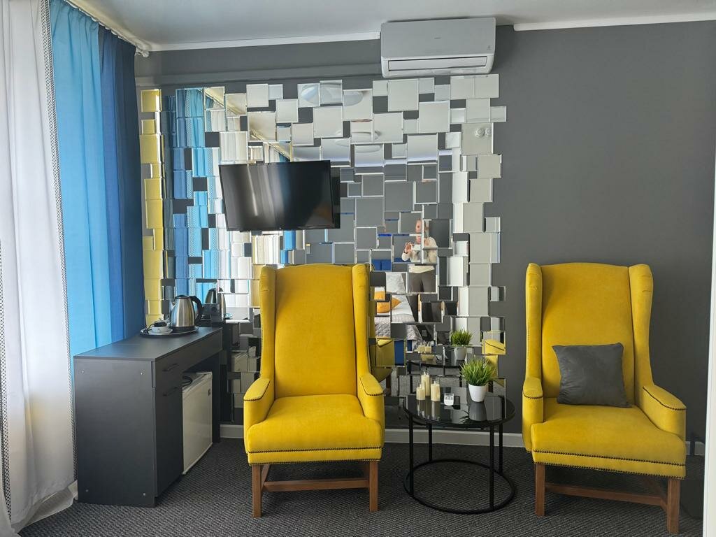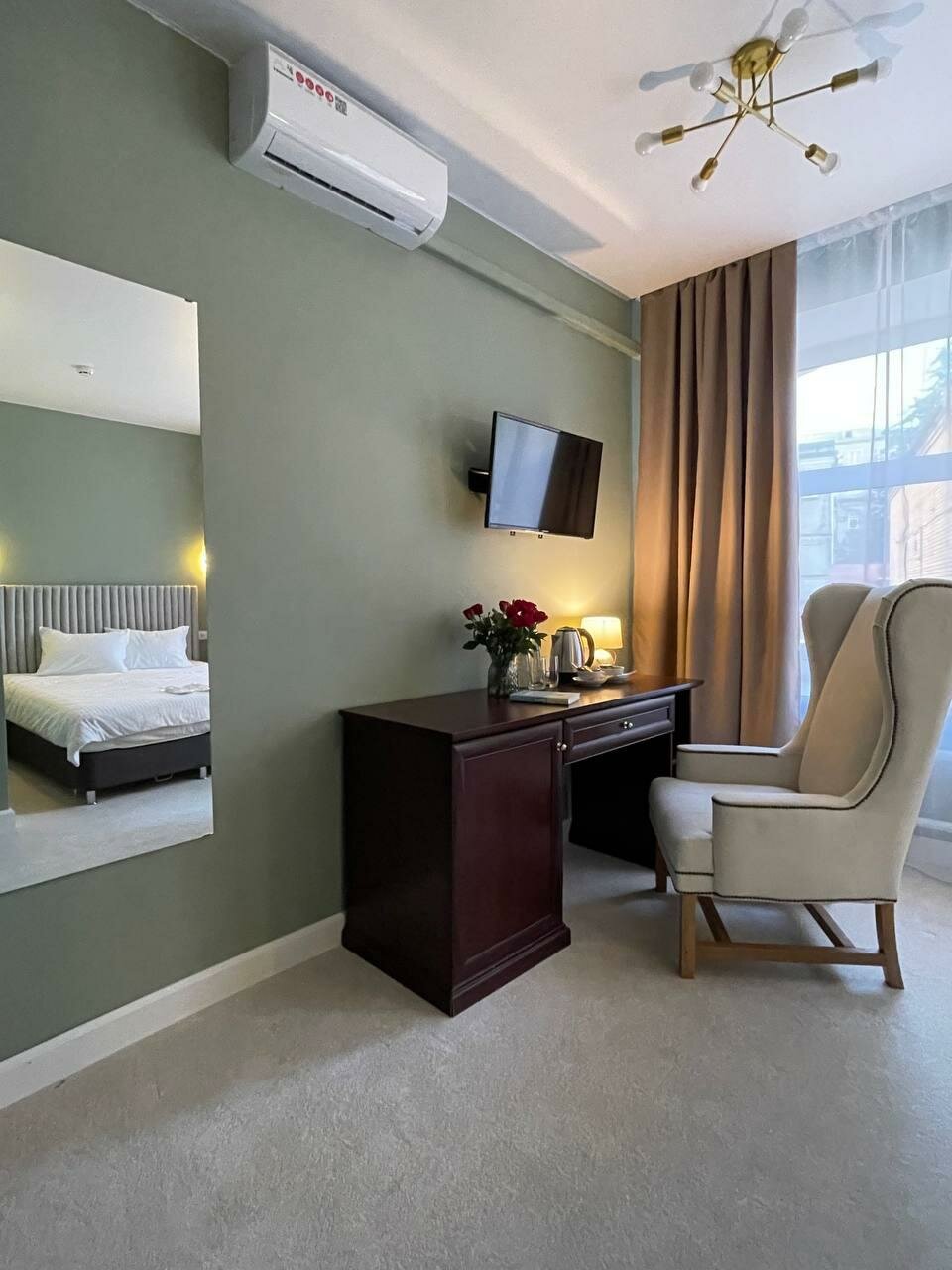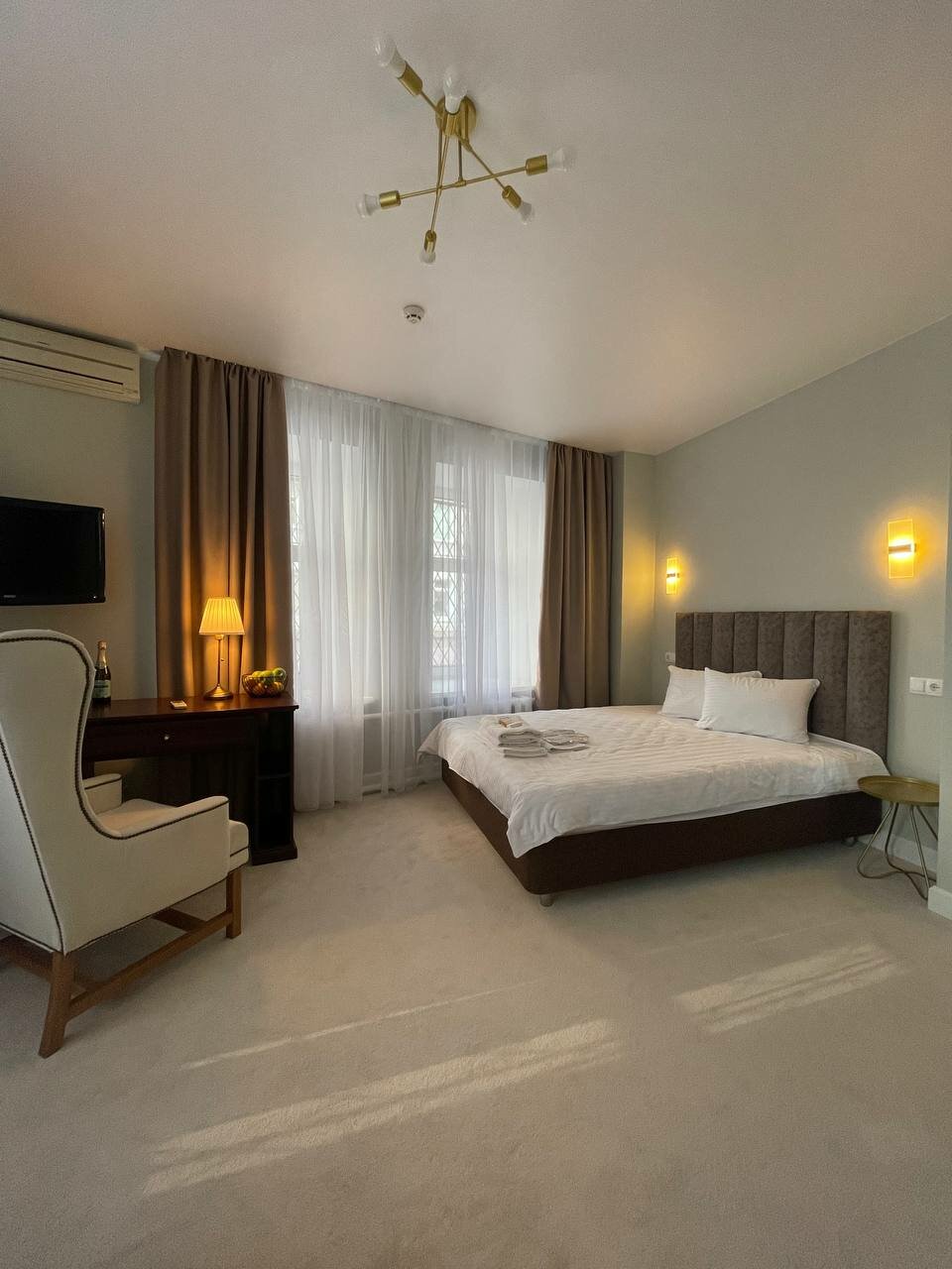 В данной категории размер номера составляет 23 кв м, с двумя большими окнами, в каждом номере располагается двуспальная кровать, прикроватные столики, два кресла, журнальный столик, туалетный столик, вешалка-штанга для одежды, мини-холодильник, ча...