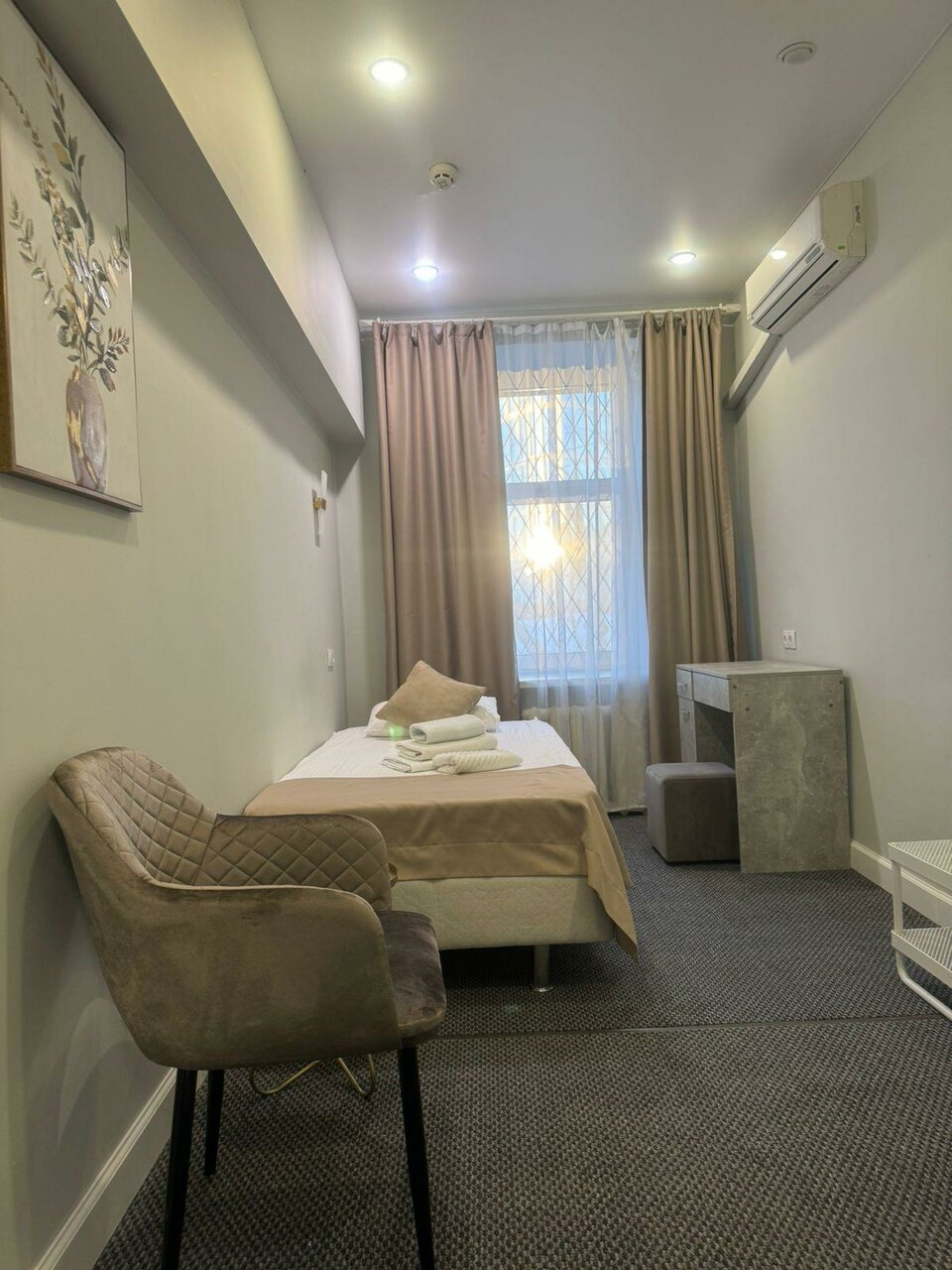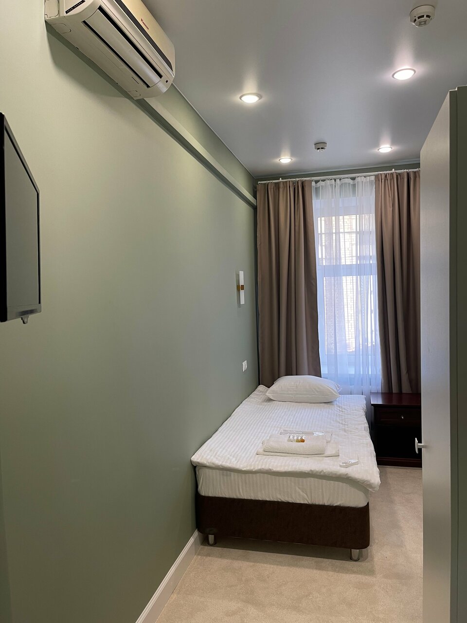 Отличный отель за свою цену. 3 минуты от метро, чистые номера, приветливый персонал, отличные душевые кабины, холодильник, кондиционер в каждом номере.