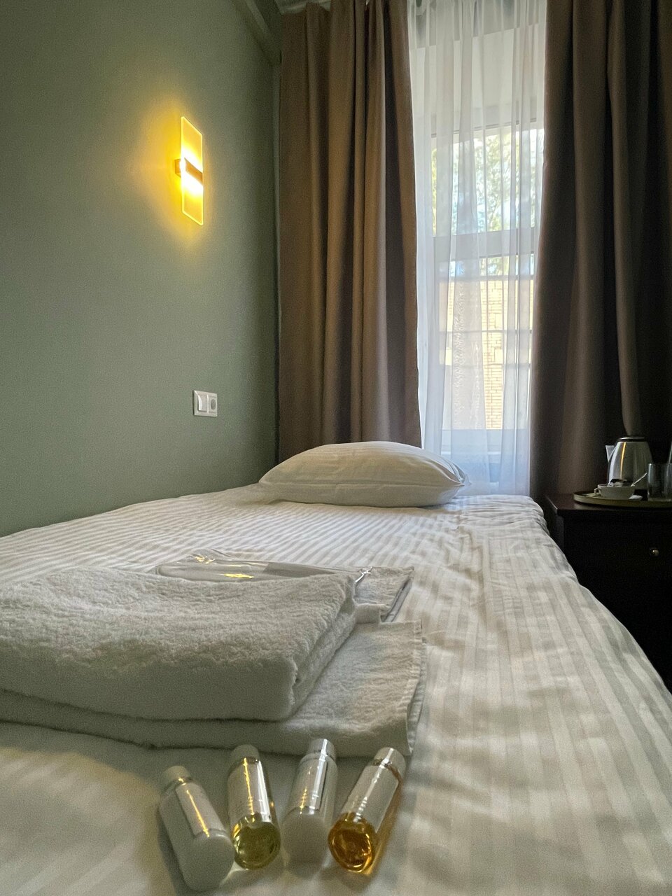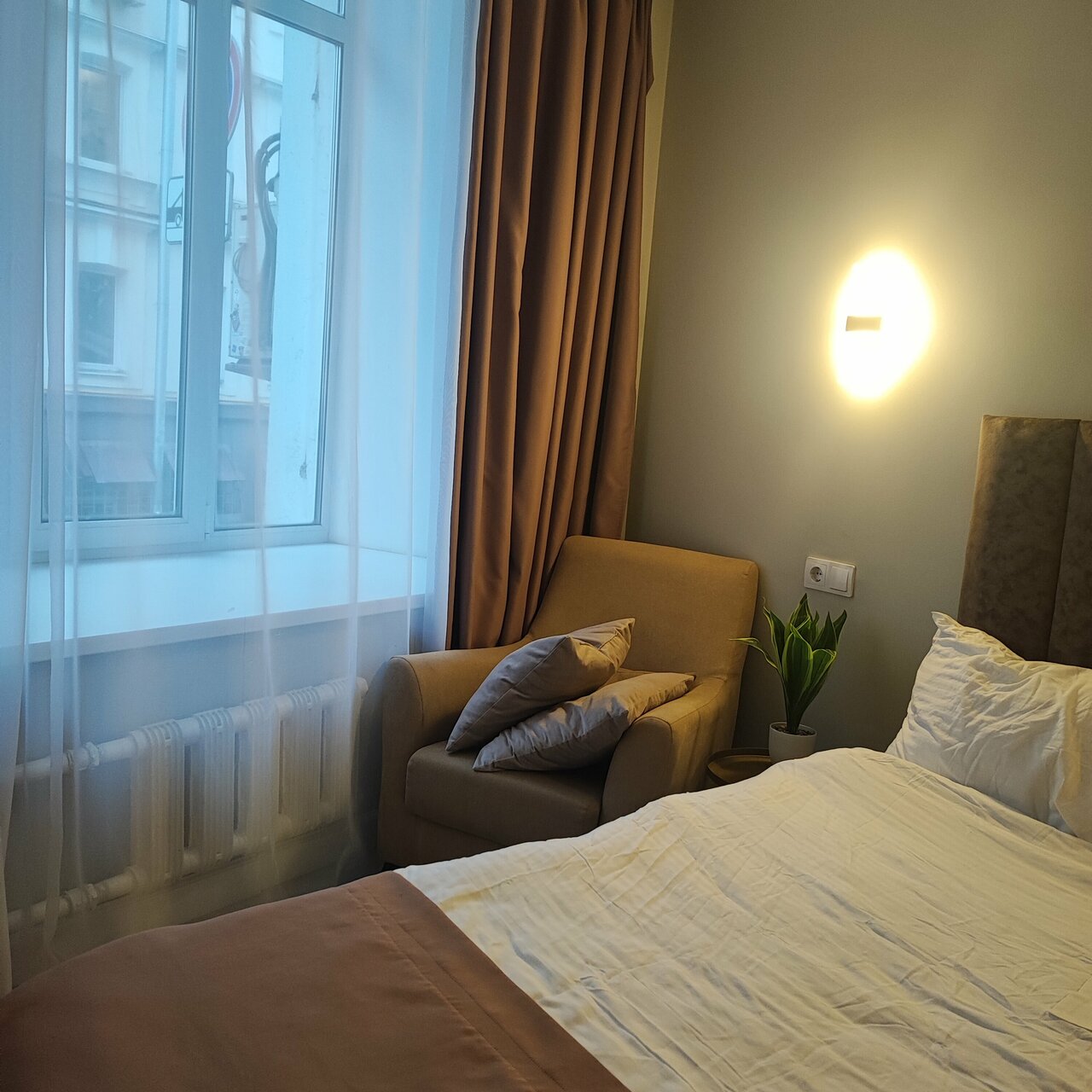 Хороший номер: чистый, уютный. Обстановка в отеле умиротворяющая. Персонал вежливый и приветливый. Порадовало удобное расположение отеля. Рядом автобусная остановка, станция метро. Неподалёку есть круглосуточный магазин.