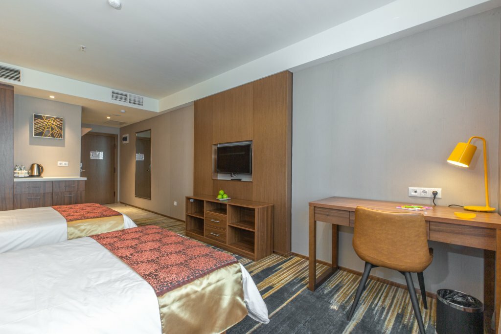 Номера чистые приятно,но если вам нужно куда то выехать такси к отелю не подъедет нужно идти далеко,опасно могут раскатать фура и вокруг кафе блеваловка узбекская и приготовление пищи в грязных условиях. А отель класс и персонал очень понравился.спасибо.