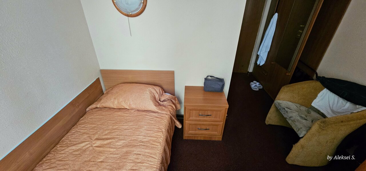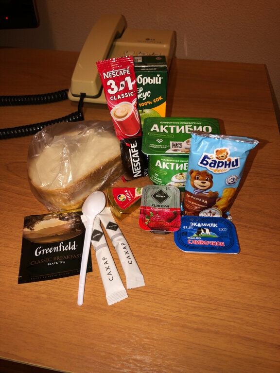 Номер вызывает желание плакать.. Кровати все раздолбанные, все шатаются… Зубную щетку, как и шампунь с гелем надо не только просить чтоб принесли, а ещё самому ходить иначе не принесут.. Мусор убирают через день… Уборка тоже.. Может так и должно быть.. Не знаю.. Слышимость.. Это отдельный разговор.. Слышно как ходят все .. Сверху, сбоку.. Как будто в одной комнате. Полотенца чистые, хорошие! Еда)) это завтрак в бумажном пакете который дают тебе вечером с собой)) состав: — хлеб 3шт, колбаса толщиной с листьями бумаги — 4шт, йогурт — 1 шт, мишка Барни — 1шт, масло, джем и сыр треугольник по — 1 шт. И сок 200 мл! Персонал вежливый, обходительный!