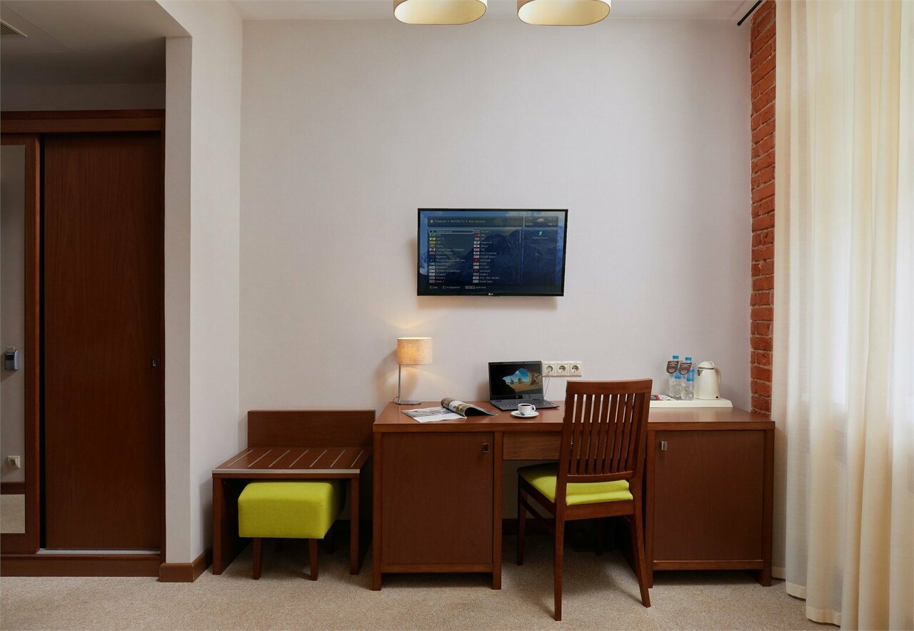 Просторный однокомнатный номер площадью 29 кв.м. оборудован современной мебелью и всем необходимым для комфортного отдыха и работы.