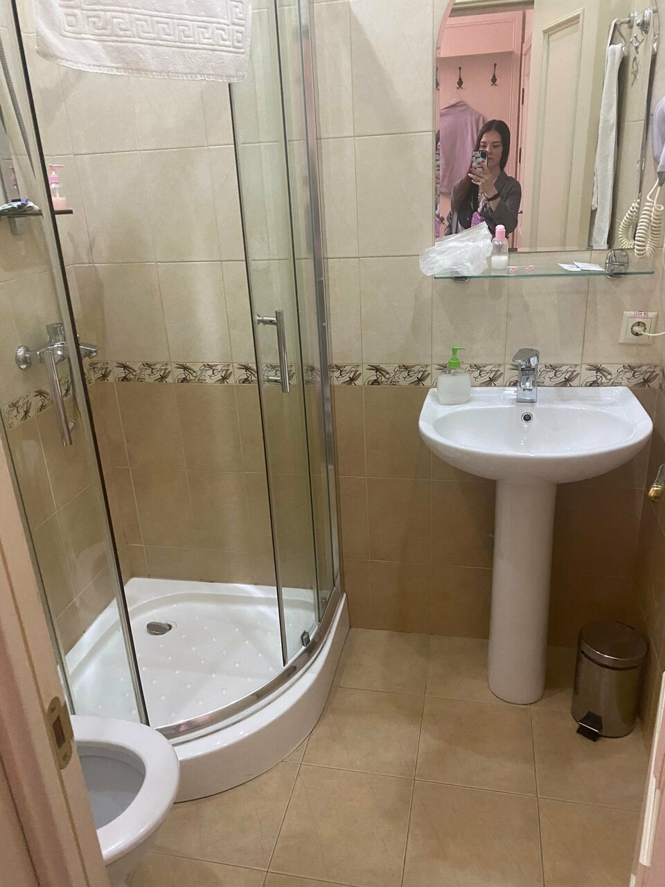 Однокомнатный, двуспальная кровать, трансформируемая в 2 раздельные кровати. LED TV, сплит, холодильник, посуда, телефон, затемняющ. шторы, с/у с ванной, банно-косметич. принадлежности. S-20m, h- 3,5m
