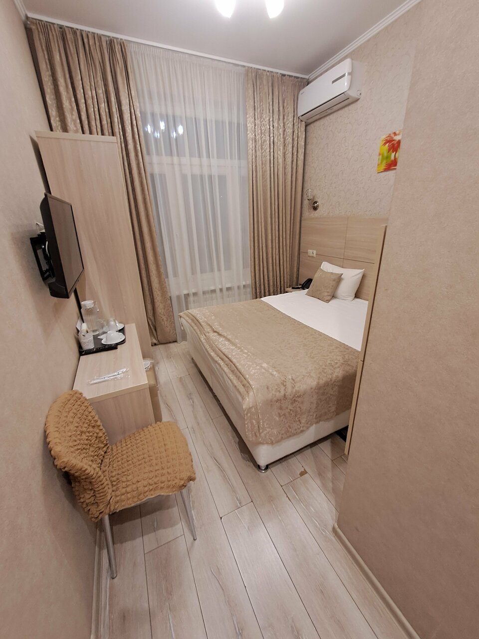 Очень хороший отель, чисто, тепло, уютно . Телевизор , кондиционер, утюг , можно воспользоваться микроволновкой . Персонал доброжелательный , завтрак подают в номер по запросу вовремя .