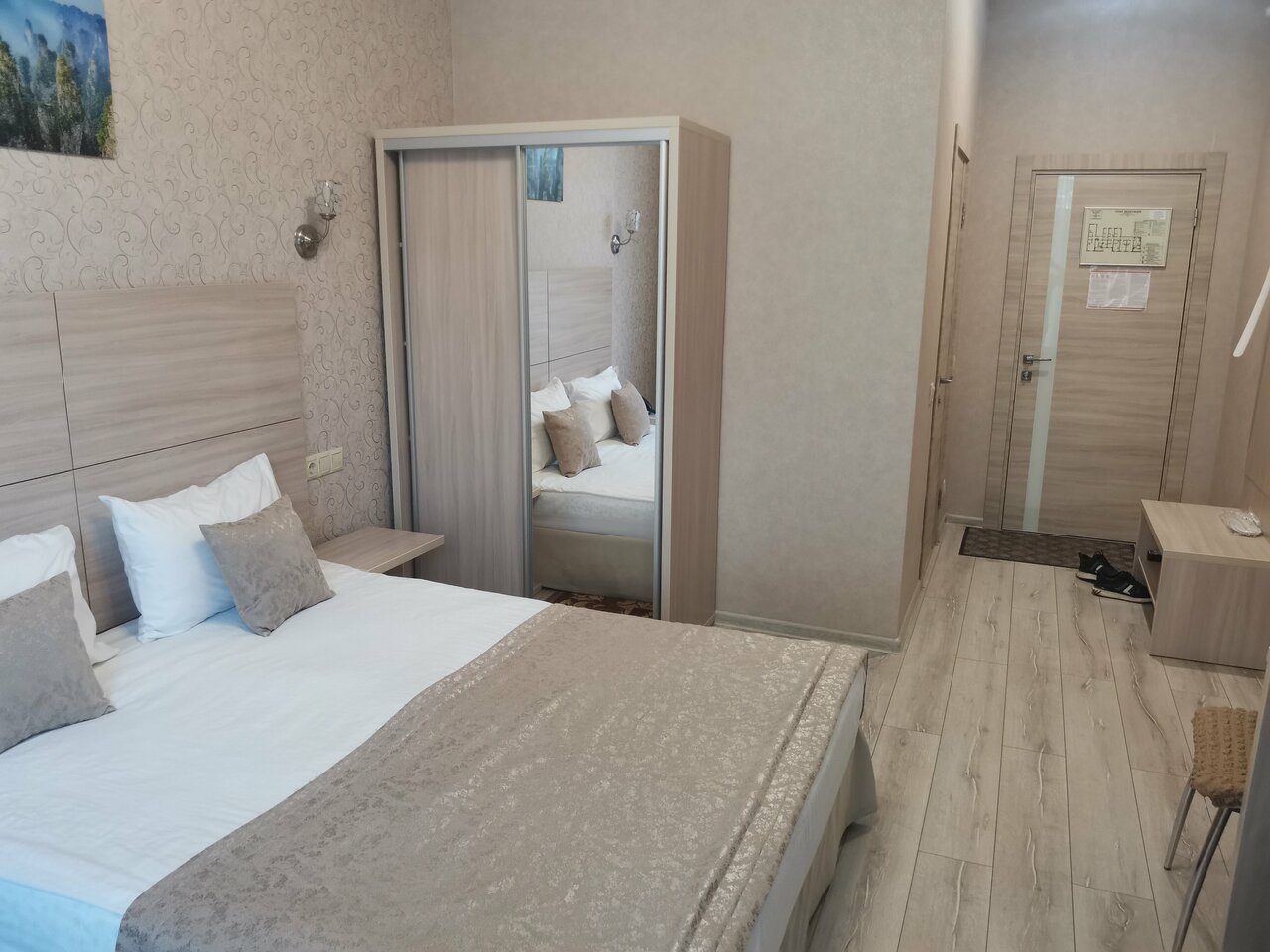 Отель очень понравился. Очень уютный ,чистый номер. Доброжелательный персонал. На коридоре есть кулер с горячей и холодной водой. Есть небольшая кухня.можно разогреть еду. Демократичная цена за номер.