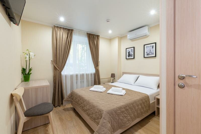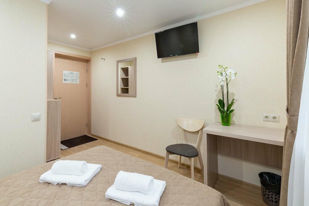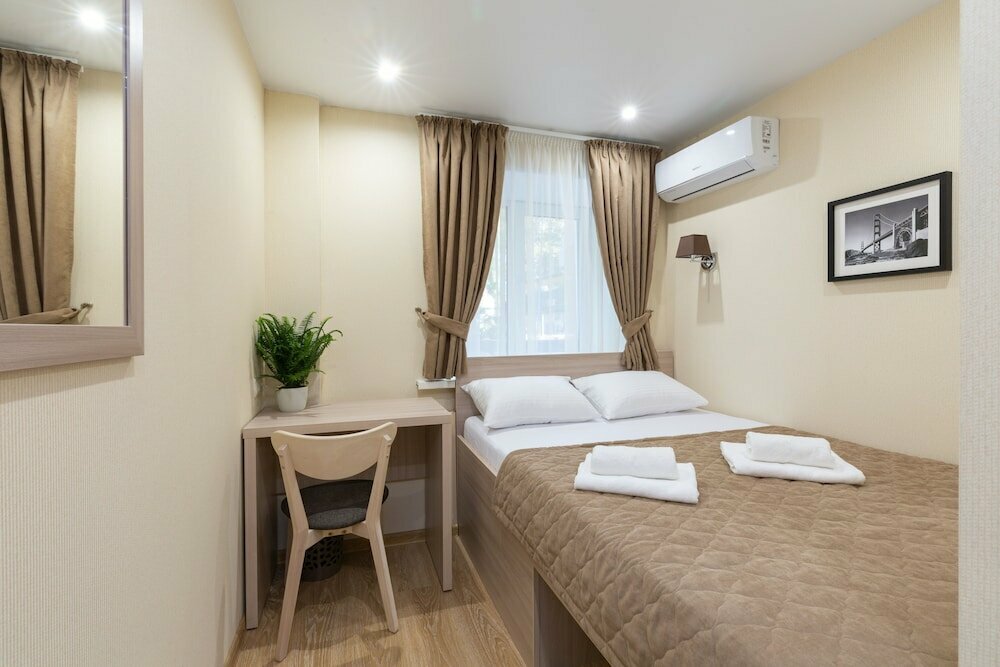 Можно сказать одним словом: чисто. Хорошо девочки убирают. Постель, полотенца всё чистое, белое. И очень тепло. Можно проветрить помещение, это всё всё-таки цокольном помещение и проветривать надо. Кухня общая, но всё необходимое есть и тоже очень чисто. Расположение отеля хорошее, центр недалеко совсем. На расстоянии 300 метров хороший продовольственный магазин.