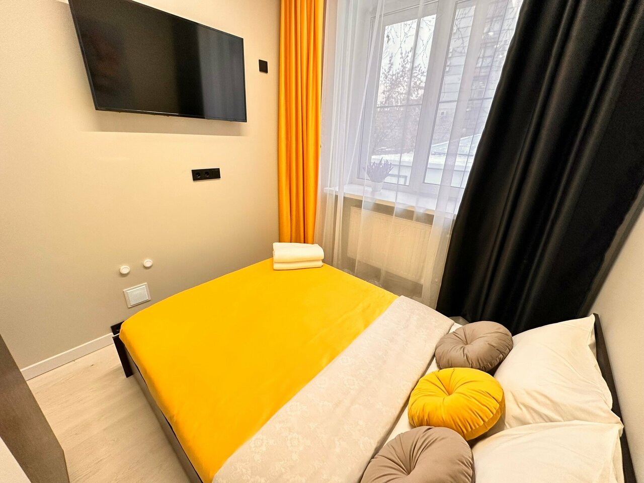 Скромно, бюджетно. Плюсы: легко добраться даже на метро, расположение, круглосуточное заселение, в номере относительно чисто. Есть холодильник, микроволновка, чайник, посуда, чай, кофе, сахар Минусы: постельное чистое,но далеко не новое, нет ни одного стула, чтобы присесть, канализация работает не очень, принимая душ вода застаивается. Не для привередливых
