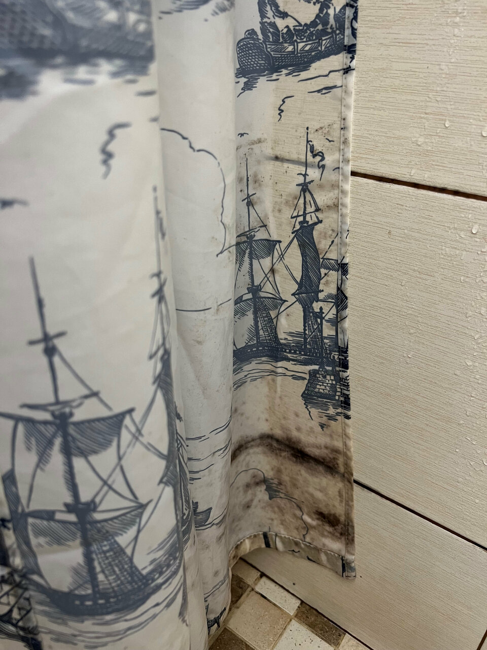 - Грязно, влажно в комнате, плесень на полотенцах и шторке.