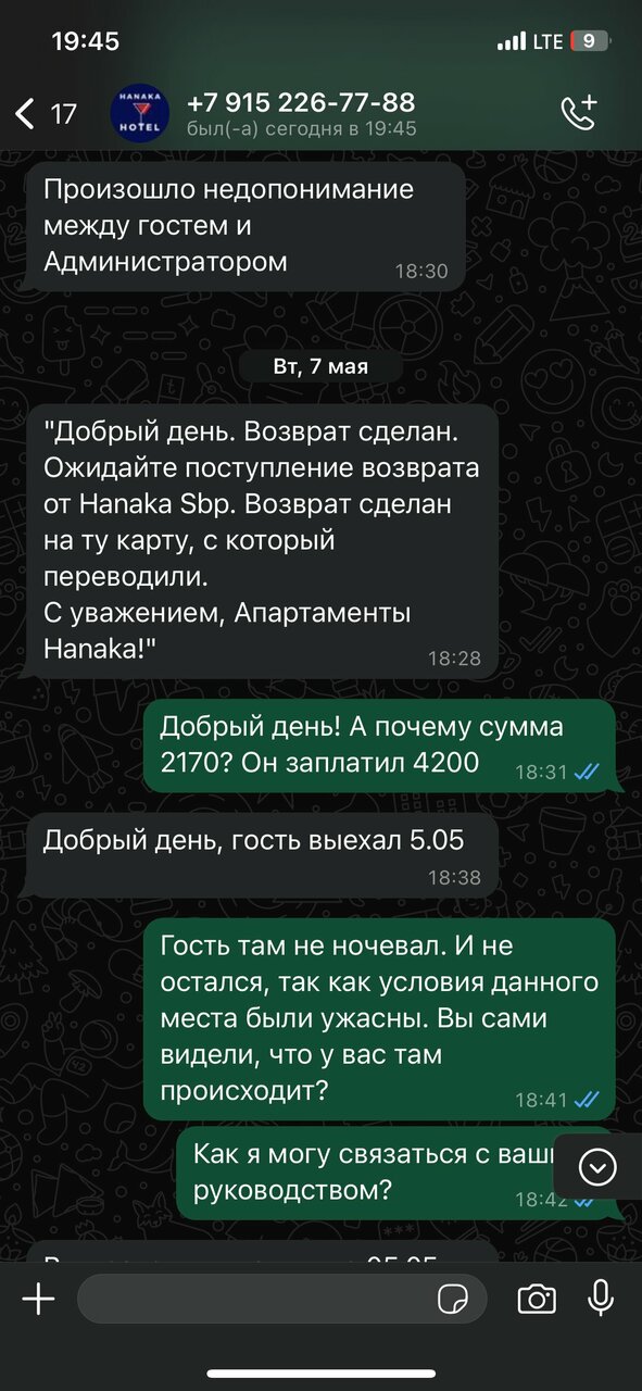 Отель Ханака без причины отменил бронь № 293059979 (бронировали с сайта Островок). Бронировали с оплатой в отеле. К бронированию была привязана карта. Заселение по причине вечернего прибытия поезда должно было состояться 7 июня в период с 21 часа до 22 часов. Об этом было сообщено сразу при бронировании. Однако, приехав в отель в заселении было отказано. Стали говорить, что мы не подтвердили заселение. Хотя никто не звонил, а на электронную почту вечером в 20.43 6 июня пришло письмо с просьбой подтверждения брони. через 1,5 часа мы ответили, что бронь подтверждаем и просим учесть, что заезжать в отель будем с 21 часа до 22 часов. Попытка решить вопрос никак не увенчалась успехом. При звонках на Горячую линию сайта Островок тоже ничего не решилось. Правда, там уже сослались на сбой при бронировании. Так что ЕСЛИ ХОТИТЕ ОСТАТЬСЯ НОЧЬЮ НА УЛИЦЕ МОСКВЫ — ВАМ в Отель Hanaka на 1-й Энтузиастов!