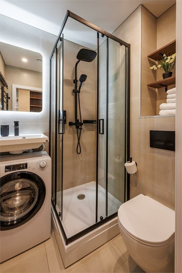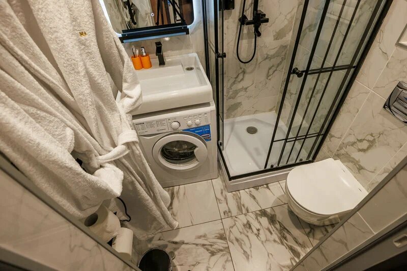 - Наличие плиты, микроволновки, стиральной машины, посуды.