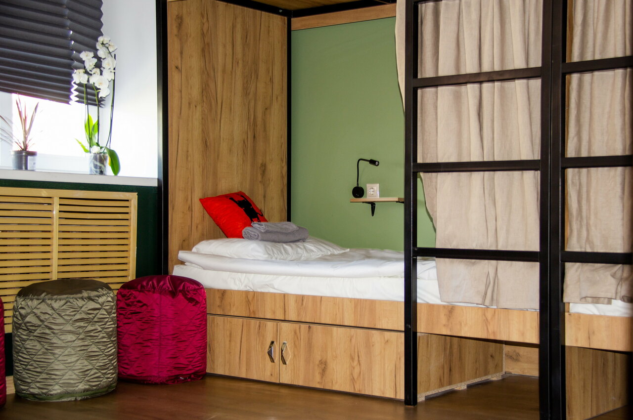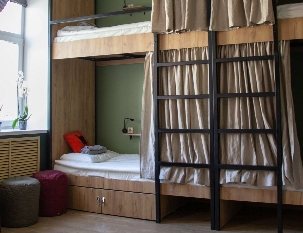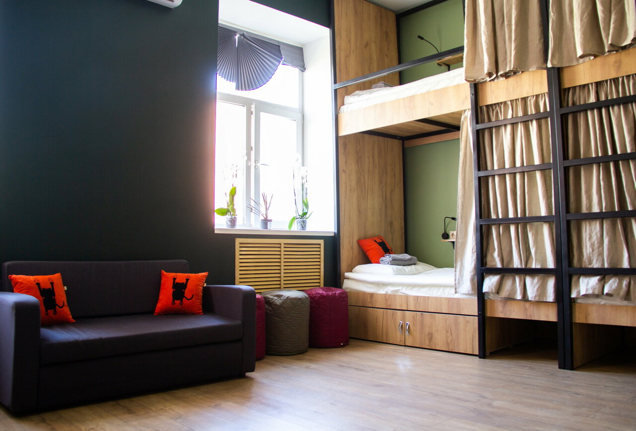 Плюс в расположении хостела .Он в пешей доступности от метро.Минусов много: подниматься на 4 этаж не так просто,нет по сути женских комнат(10-местная не каждому подойдет),шумно и опасно ,не знаешь, кто живет рядом.Все-таки квартирный вариант хостела не самый лучший,спокойней и безопасней отдельно -стоящий …