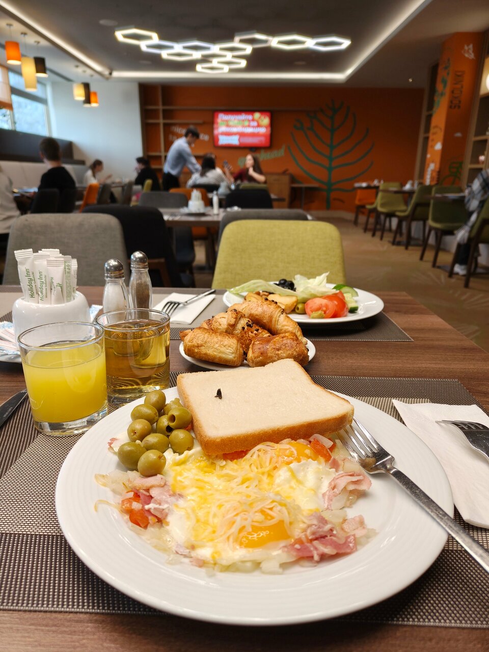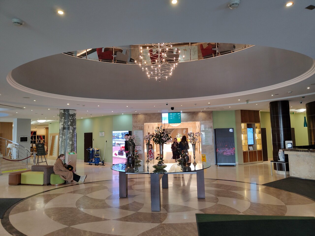 Добрый день. Хорошая гостиница. Отличные завтраки. Очень красивый вид из окна. Рядом торговые центры и множество магазинов. На самом последнем этаже есть ресторан с шикарным видом из окна. Имеется спорт зал и сауна. Из минусов к сожалению сауна и спортзал работает отдельно от отеля, очень много народа.