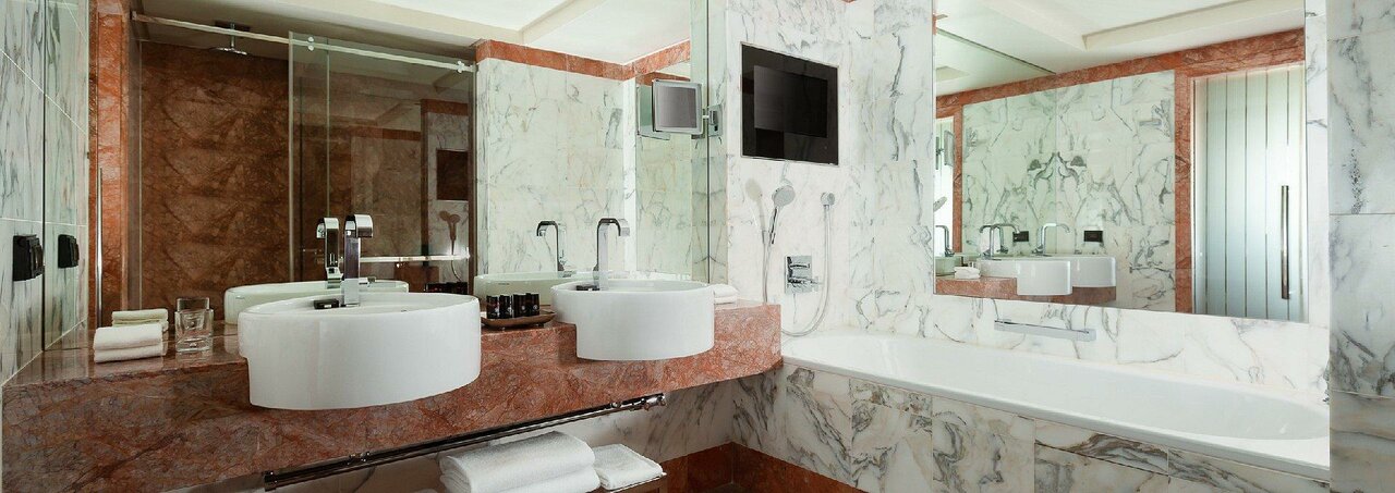 Люкс площадью 89 м² с двумя раздельными комнатами: большой спальней с гардеробной и просторной гостиной с рабочим местом, 2 диванами, жк-телевизором, кофе-машиной и отдельной гостевой ванной комнатой. Изысканная мраморная отделка ванной комнаты с ...