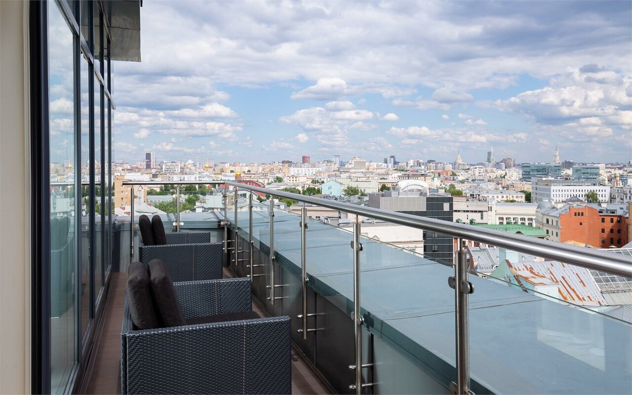 Люкс площадью 140 м² с панорамным видом с открытой террасы. Стильная гостиная, отдельная кухня, просторная зеркальная гардеробная, элегантно обставленная спальная с великолепной ванной комнатой.