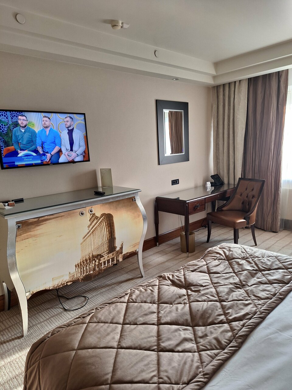 Решила остановиться в этом отеле, так как удобная локация, да и сама звездность говорит сама за себя. Конечно есть свои плюсы и минусы. Приветливый персонал, просторный номер с шикарной кроватью и накрахмаленным постельным бельём, достаточно чистый номер, есть все необходимое. Шведский стол не такой уж и разнообразный, но есть возможность заказать по меню. Из минусов конечно уже чувствуется несвежесть ремонта и только это немного портит внешнее общее впечатление от отеля. Если меня спросят, вернулась ли бы я снова сюда, думаю, да!
