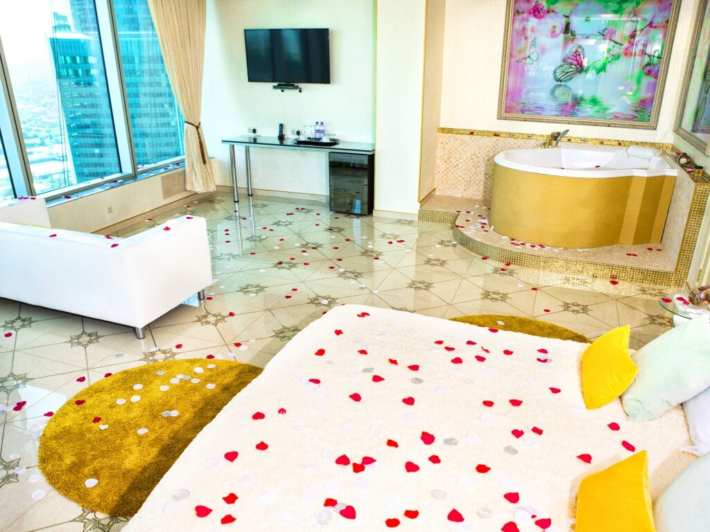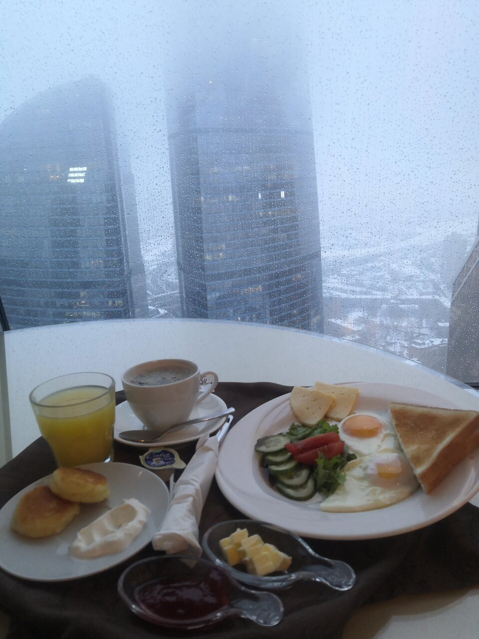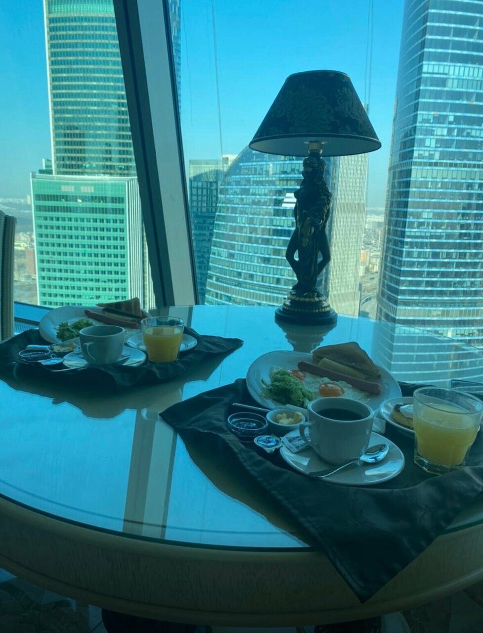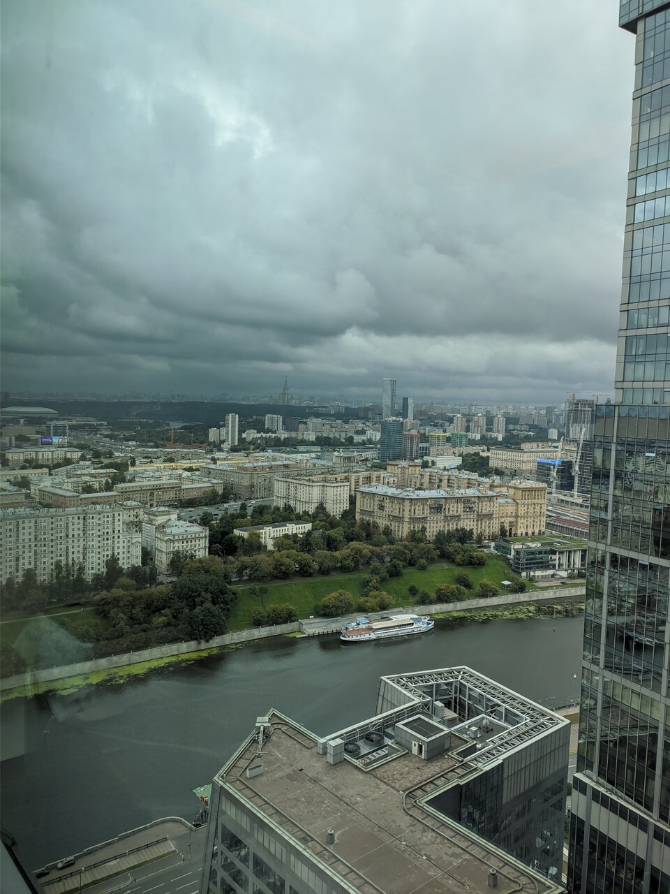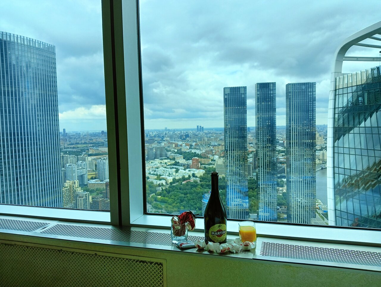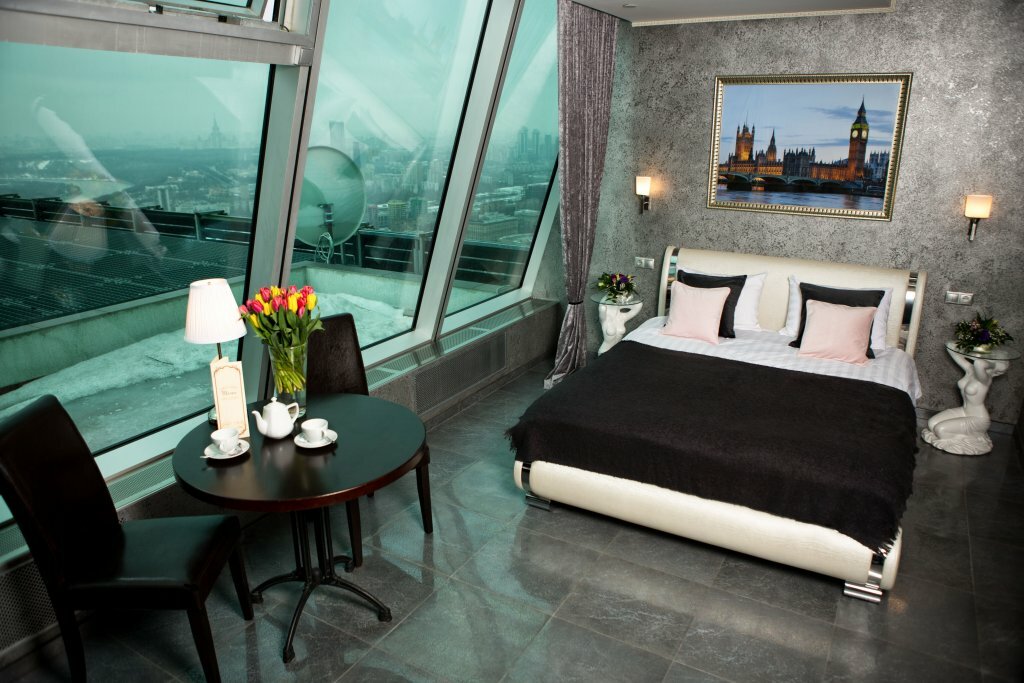 Шикарный вид из окна :) Хороший завтрак в номер. В номере обеденный и рабочий столы. Номер выглядит дорого-богато с налётом цыганского золота :) Сантехника и прочее в норме. Некоторые заморочки с регулировкой температуры, принудительная вентиляция шумновата. Пропускная система — взрыв мозга. Есть смысл выбирать именно эту гостиницу в двух случаях: 1. Хочется галочку ‘жил на 55 этаже Москва-сити’ 2. Деловое мероприятие в самом Москва-сити