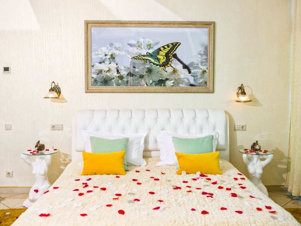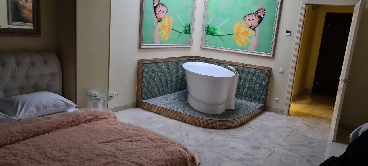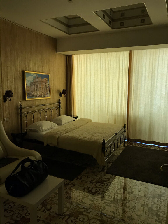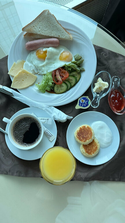 Чисто, просторно, красивый интерьер и вид из окна. Все удобства есть. На потолке зеркало Мне все понравилось . Завтрак подали вкусный.
