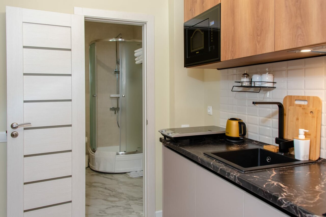 Уютный однокомнатный номер для двоих в гостевом доме Sport Point в теплых тонах позволит насладиться всеми плюсами отдыха в Новогорске. Современная мебель и приятный дизайн придутся по вкусу как парам, приехавшим отдохнуть в Sport Point на выходны...
