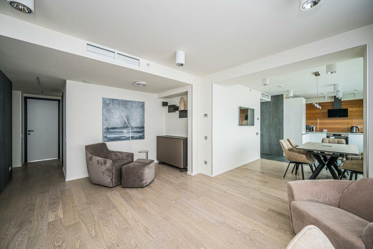 В апартаменте две спальни с двуспальными кроватями, кабинет со спальным местом. Полностью оборудованная кухня, стиральная машина с сушкой, посудомоечная машина, встроенный питьевой фильтр. ТВ в каждой комнате, балкон, просторная гостиная.