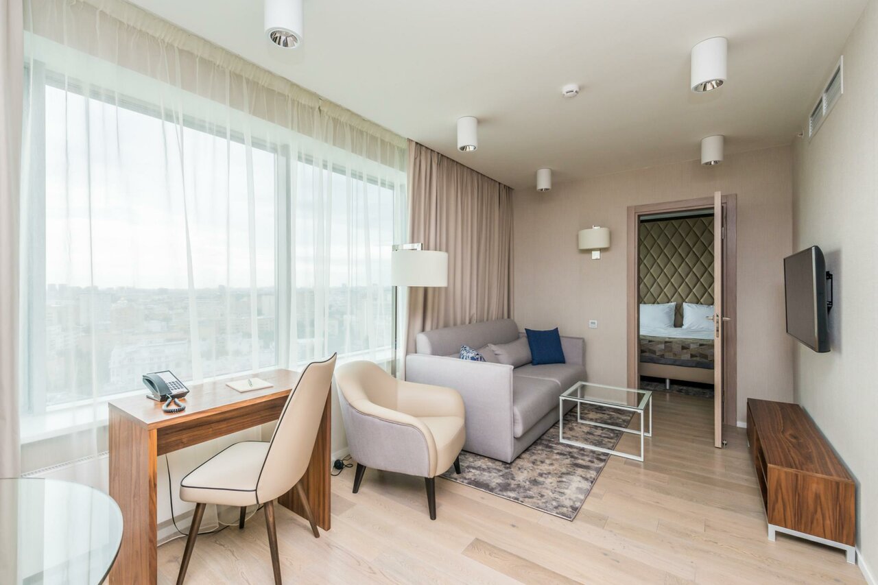 Отличное расположение (Красная площадь -25 минут пешком), в номере чисто, свежий ремонт, хорошая техника (включая стиралку и посудомойку!). Классный вид из окна на город (жили на 14 этаже). Рекомендую!