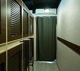 Комфортный уютный номер-капсула. Есть розетки, крючки для одежды, свет и кондиционер, металлическая шторка с замком, ящик специально для багажа и ценных вещей. В отеле есть туалет, душ, кухня, коворкинг, wi-fi, зона отдыха. Бронируйте!
