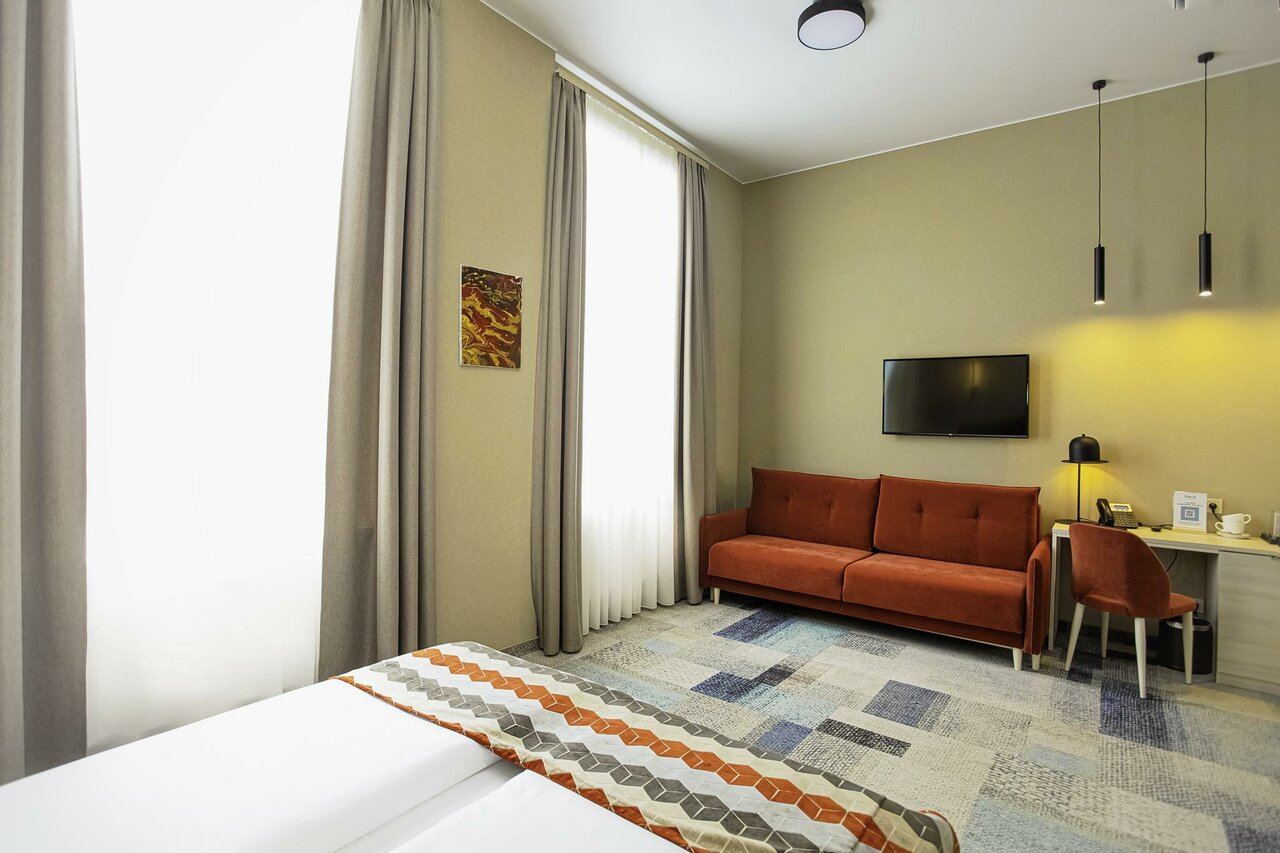 Все очень чисто и аккуратно, администрация приветливая. Каждая дверь на магнитке :) Около отеля историческая часть города с низкой застройкой, утром прогуляться на завтрак просто шикарно.