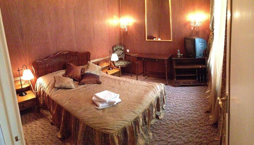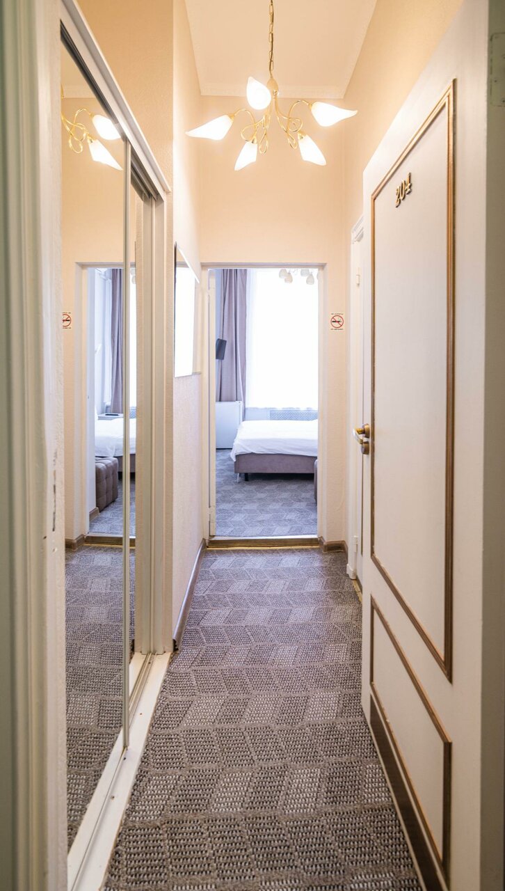 Была проездом 2 суток, для отеля 3 звезды очень неплохо. Полотенца были, постель чистая, гигиенический набор присутствовал, тапочки, вешалки в шкафу, холодильник рабочий. Понравились тёплые полы в ванной, хотя ванна очень маленькая, сидячая. Вид из окна на крышу ресторана. Но мне было не принципиально, некогда было в окно смотреть в принципе. Для ночёвки самое то, тем более в центре города.