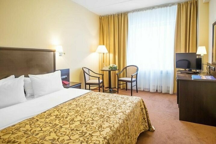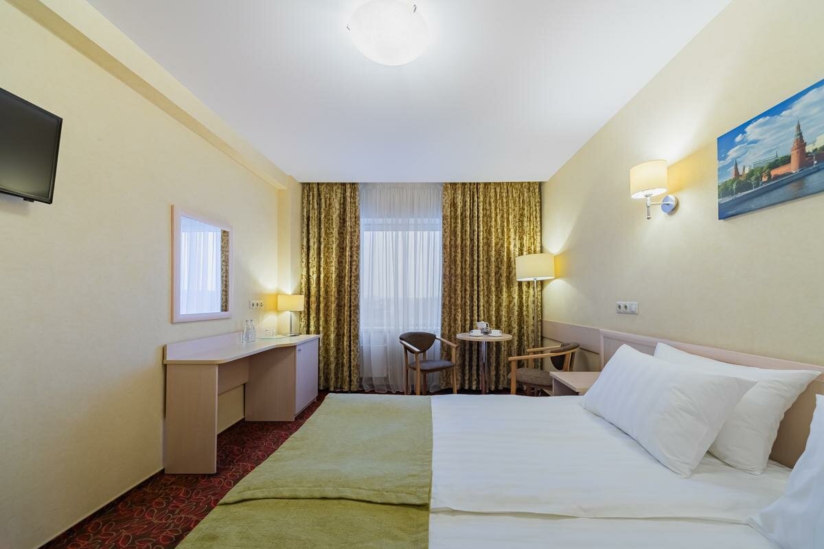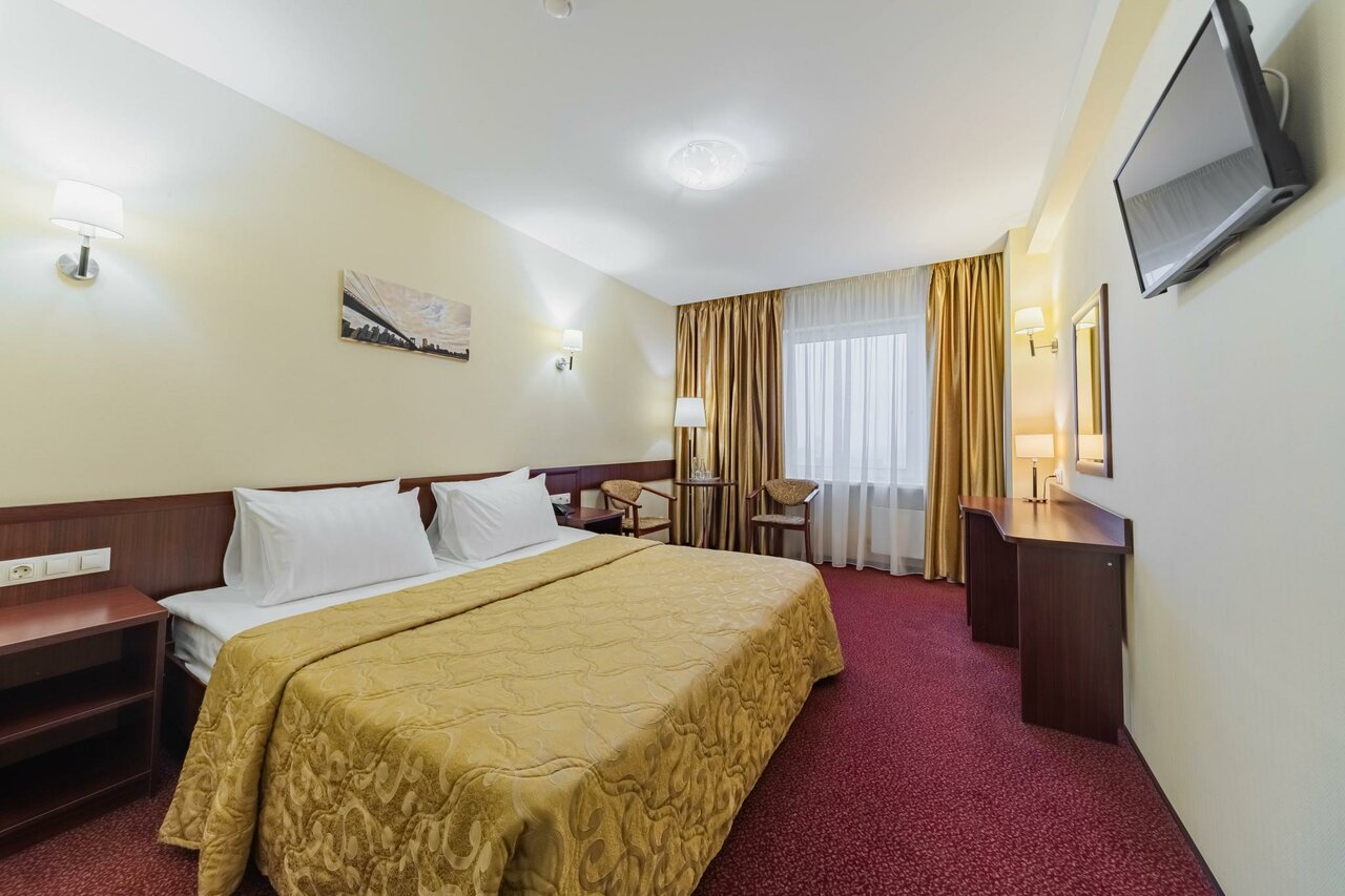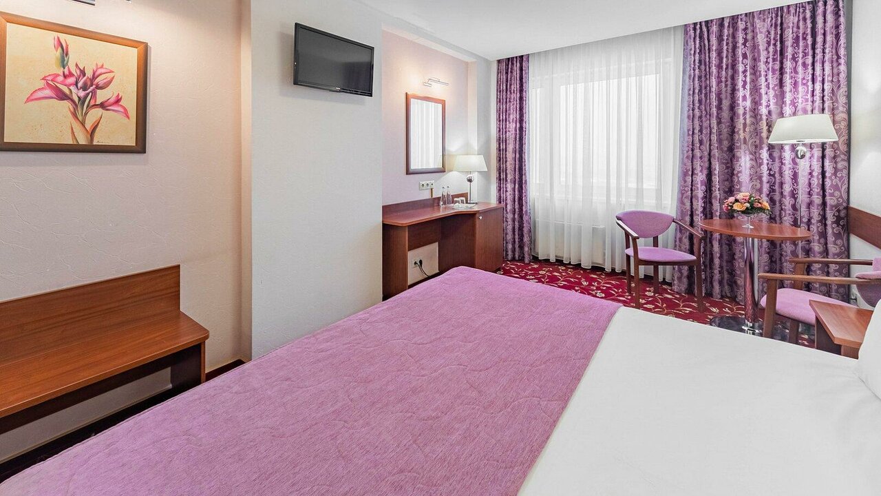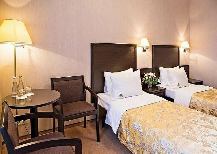 Удобства: — Кондиционер, Wi-Fi, ТВ, мини-бар, фен, сейф, халаты/тапочки. — Ресторан, кафе, бар, ночной клуб, сауна, салон красоты. — Бизнес-центр, конференц-зал, банкетные услуги. — Трансфер (аэропорт/вокзал), парковка (включая услуги парковщика). — Пандусы, лифты, круглосуточная стойка регистрации.