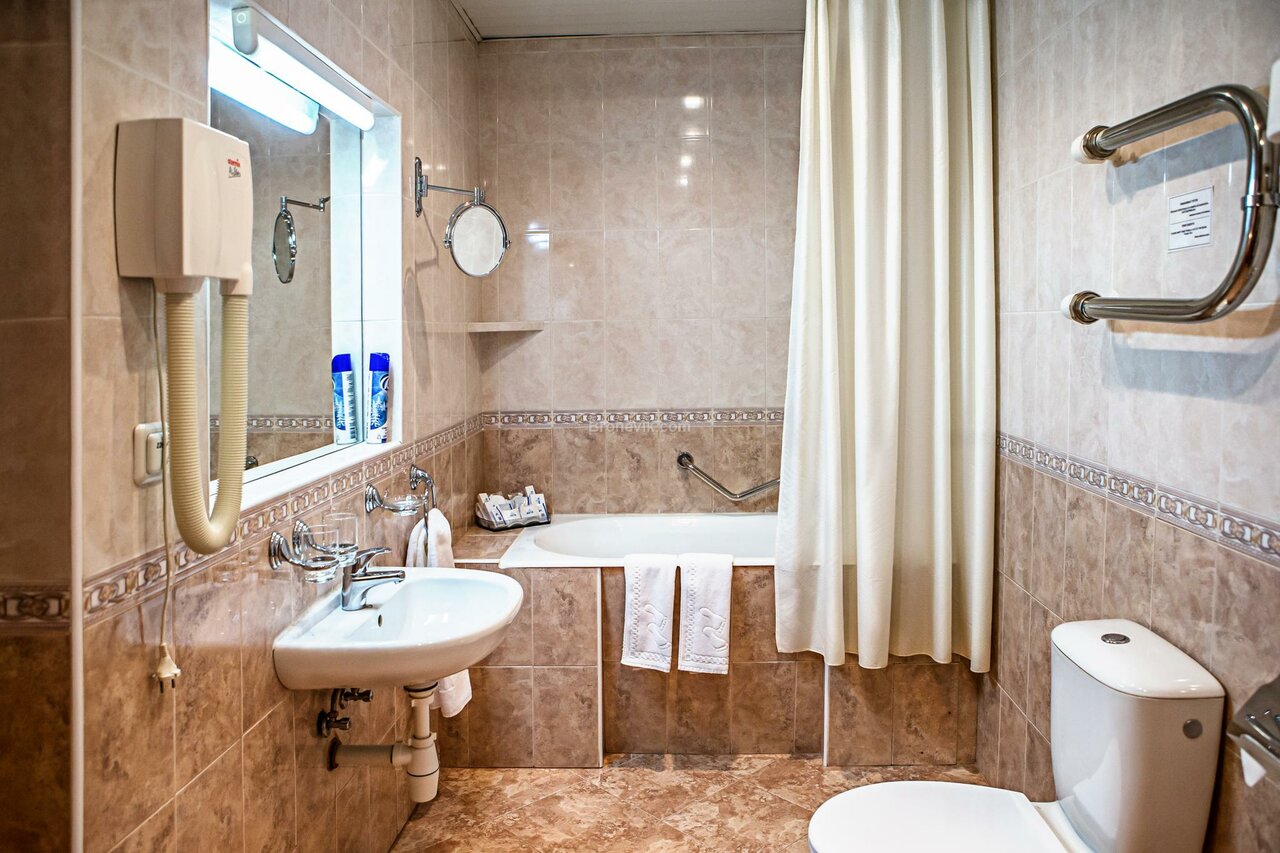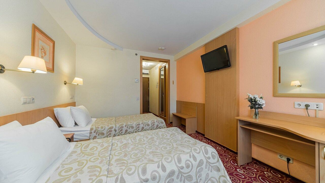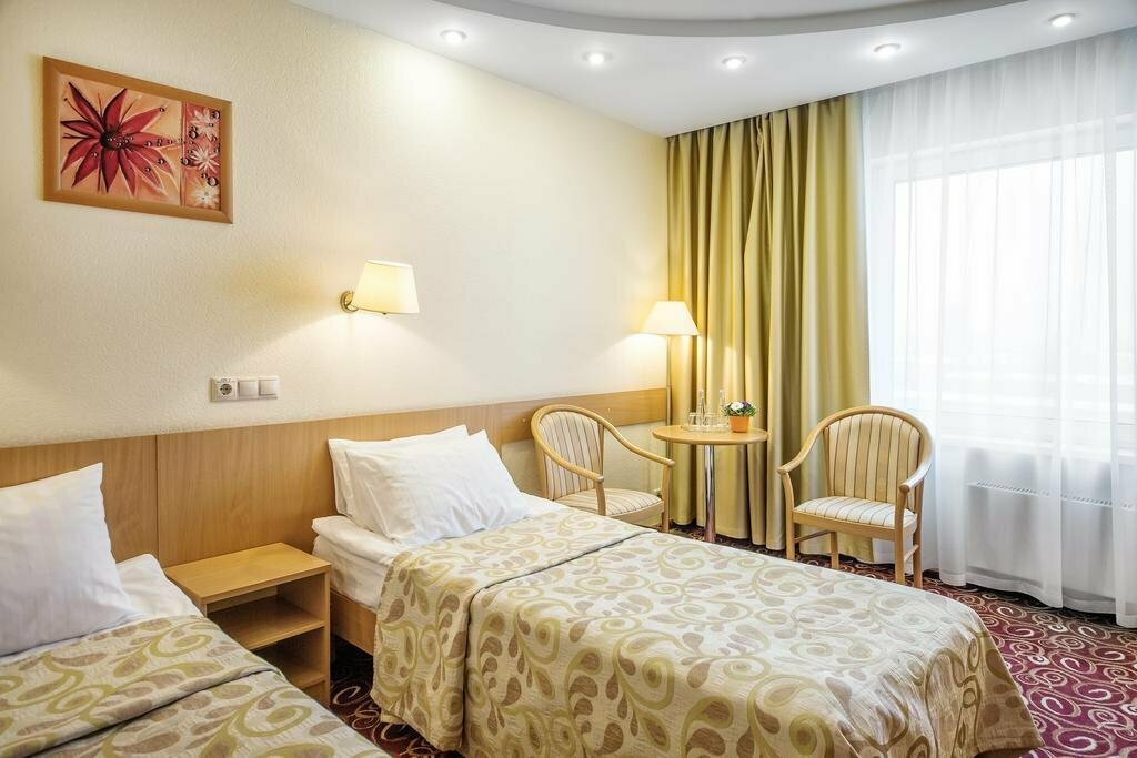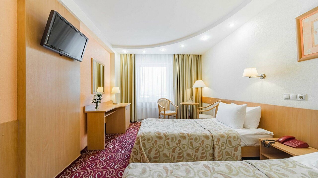 Удобства: — Кондиционер, Wi-Fi, ТВ, мини-бар, фен, сейф, халаты/тапочки. — Ресторан, кафе, бар, ночной клуб, сауна, салон красоты. — Бизнес-центр, конференц-зал, банкетные услуги. — Трансфер (аэропорт/вокзал), парковка (включая услуги парковщика). — Пандусы, лифты, круглосуточная стойка регистрации.