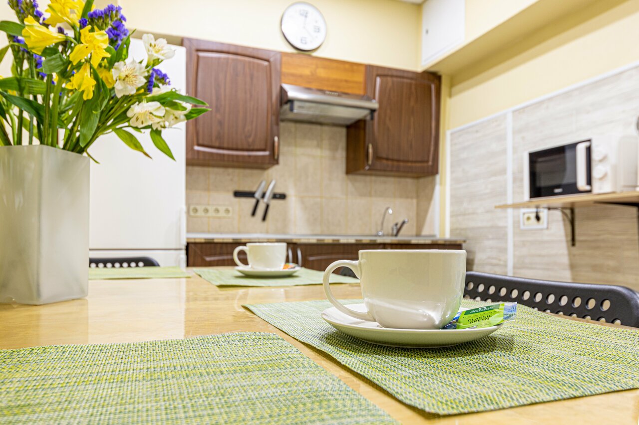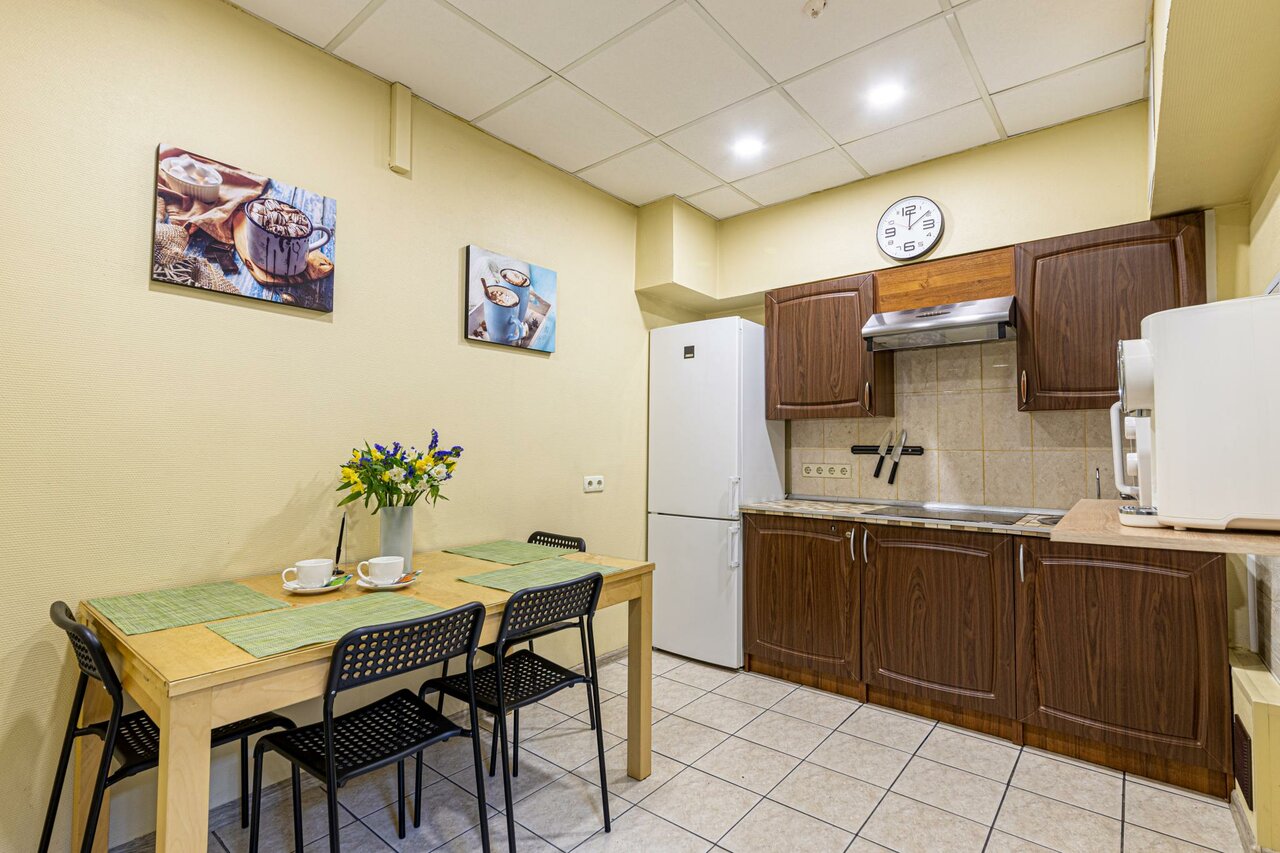 - Нет еды (только кухня для самостоятельного приготовления).