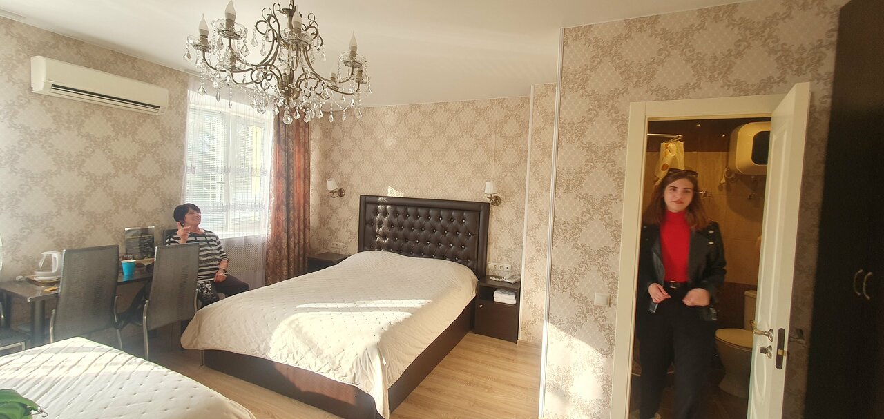 Хорошая гостиница, чисто, уютно, много цветов в холле, картины, книги, шикарные люстры и светильники. В номере есть всё необходимое, нужен был утюг, обратились к администратору, его тут же дали и гладильную доску тоже. Есть холодильник, микроволновка- это всё в холле, общего пользования, всё приличное в хорошем состоянии Девушки- администраторы очень отзывчивые, приветливые, даже разрешили оставить рюкзаки до вечера перед отлётом. Слышимость в номерах конечно высокая, но так как мы приходили только переночевать, соседи не мешали