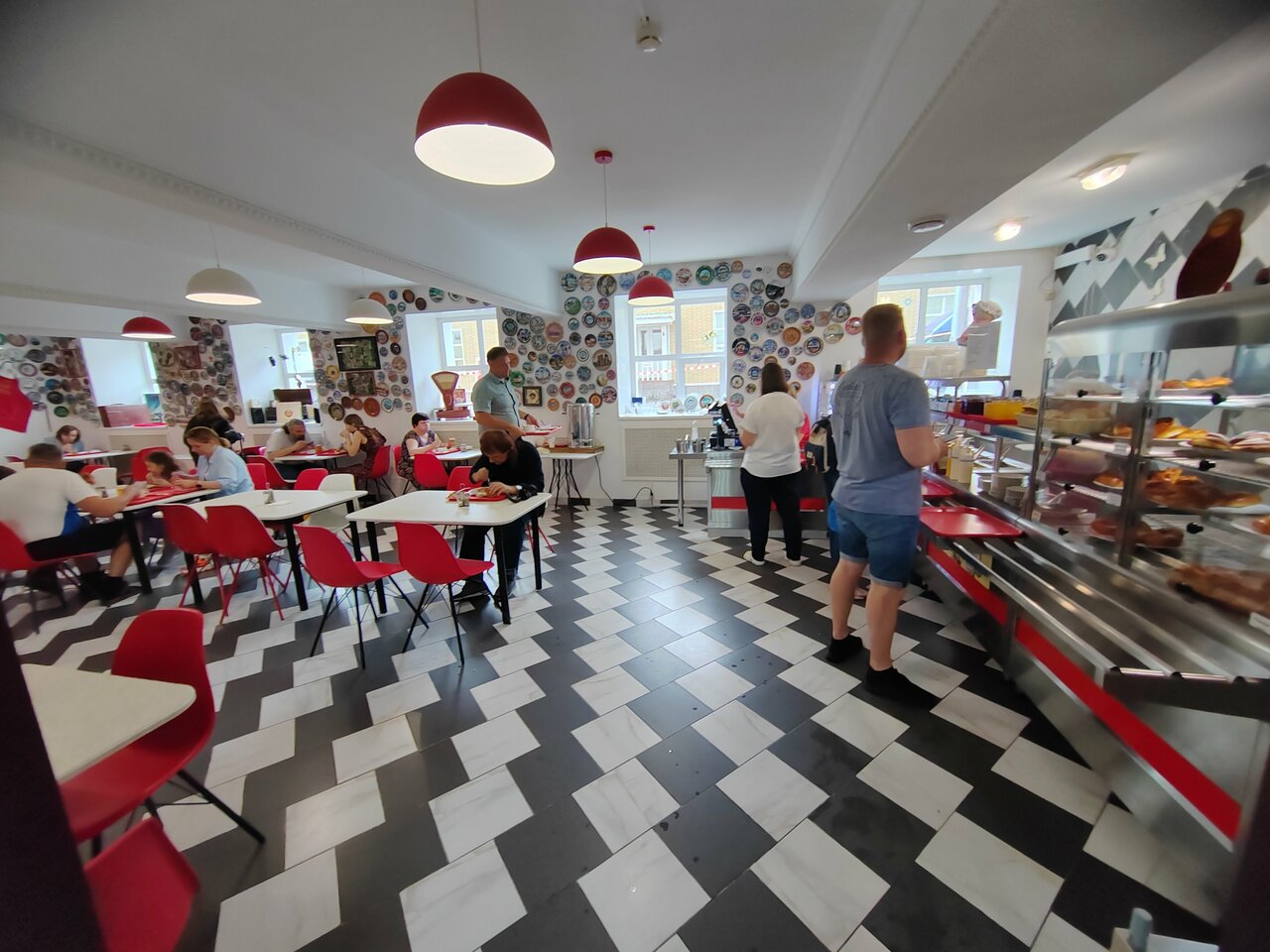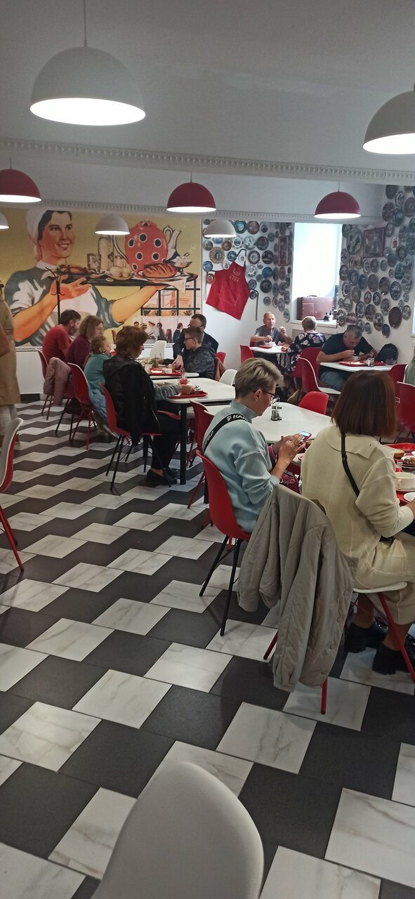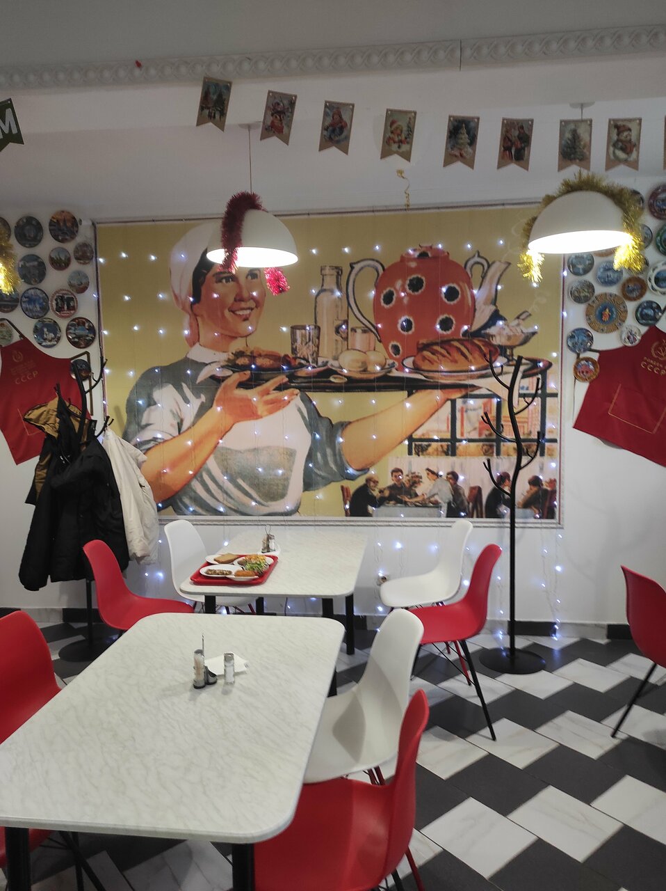 Столовая. Отличное дешёвое место для покушать. Рядом другой зал, работающий допоздна, там чуть дороже, есть спиртное, другое и нестоловское меню. Оттуда дважды заказывал в номер еду, приносят быстро: сначала три чебурека, потом пиццу.