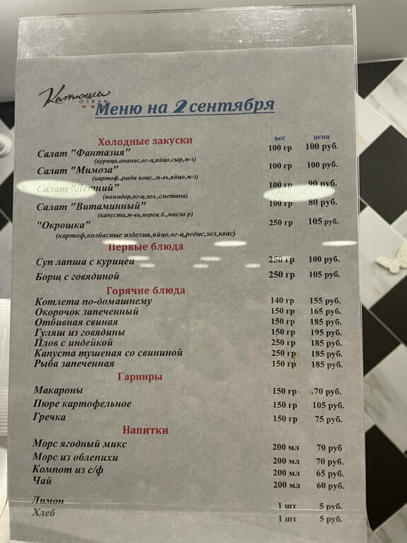 - Разнообразное меню в столовой (6 блюд на выбор).