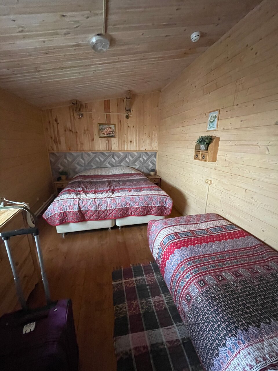 - Бесплатная парковка (на улице и на территории).; Быстрое заселение, даже поздним вечером.; Бесплатная камера хранения.; Возможность взять завтрак с собой (контейнеры предусмотрены).; Деревянная отделка, приятный запах.