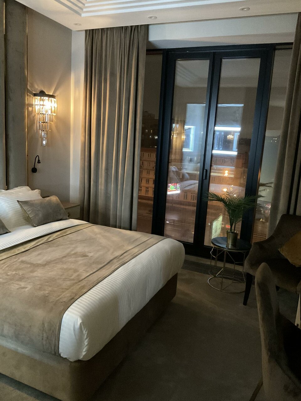 Отель прекрасный! Я нашла только плюсы, очень чисто, все новое, кровать удобная, интерьер очень красивый! Бронировала на день рождение мужа, сделали скидку и поздравили тортиком. Обязательно вернёмся!