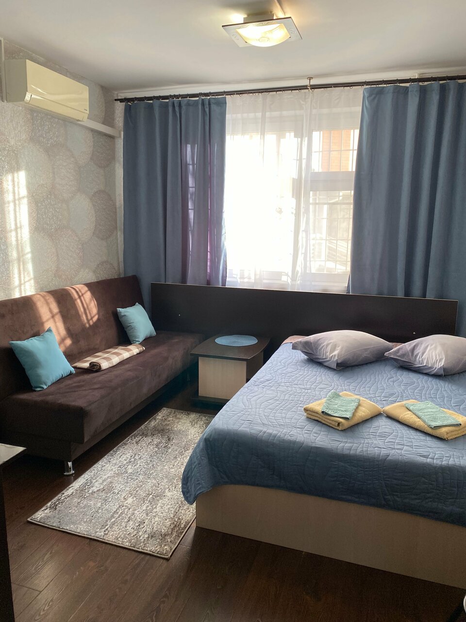 Приветливый персонал. Первое впечатление отличное: чисто, мусора нет нигде, ни за тумбами, ни за кроватью. Постель удобная, комплект постельного белья не разделен. В ванной шампунь, мыло, полотенца, т.бумага, бумажные полотенца для рук. Есть холодильник, телевизор, чайник, микроволновка в корридоре. Единственный минус это вода, она не настроена шёл либо кипяток, либо холодная(водонагреватель) При заезде оставляли залог(1000), нам его вернули при выезде. До клиники Фдорова шли минут 15. Спасибо!