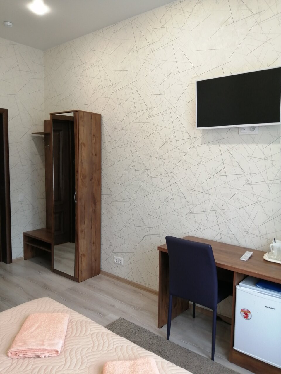 Отель небольшой находится на первом этаже жилого дома. В номерах все есть для комфортного проживания, холодильник, чайник, телевизор ( правда не очень хорошее изображение некоторых каналов). Wi-fi работает неплохо, в общем рекомендую для отдыха.